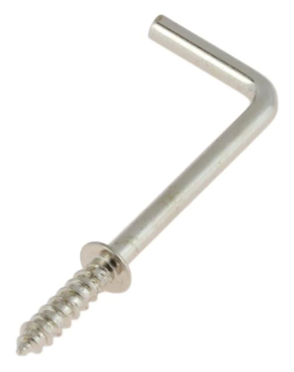 100 hooks for one price. Nickel Plated with 3/4″ wood screw threads and 1/4″ diameter shoulder stop for quick and easy install. 2-1/4″ long overall. D. Lawless Hardware Also see the Cup Hooks & Mug Hooks section for small hooks.