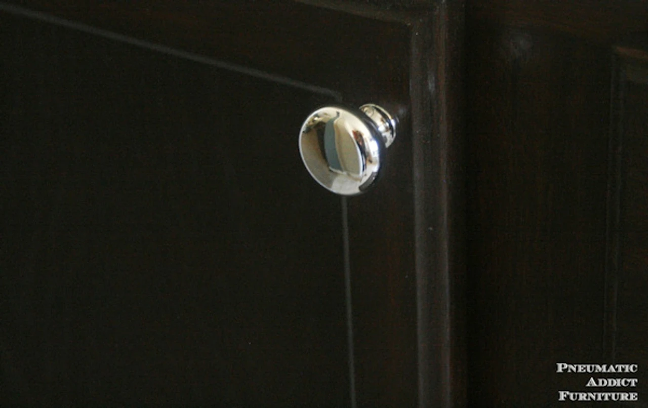 Polished Classic Bright Chrome Knob 1 1/4″ Diameter Super bright polished chrome reflects everything as you can see in the photo. The additional images show this knob as featured on the DIY blog Pneumatic Addict.