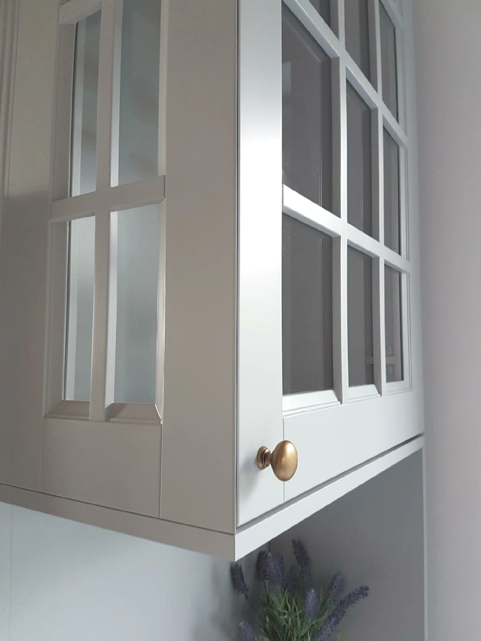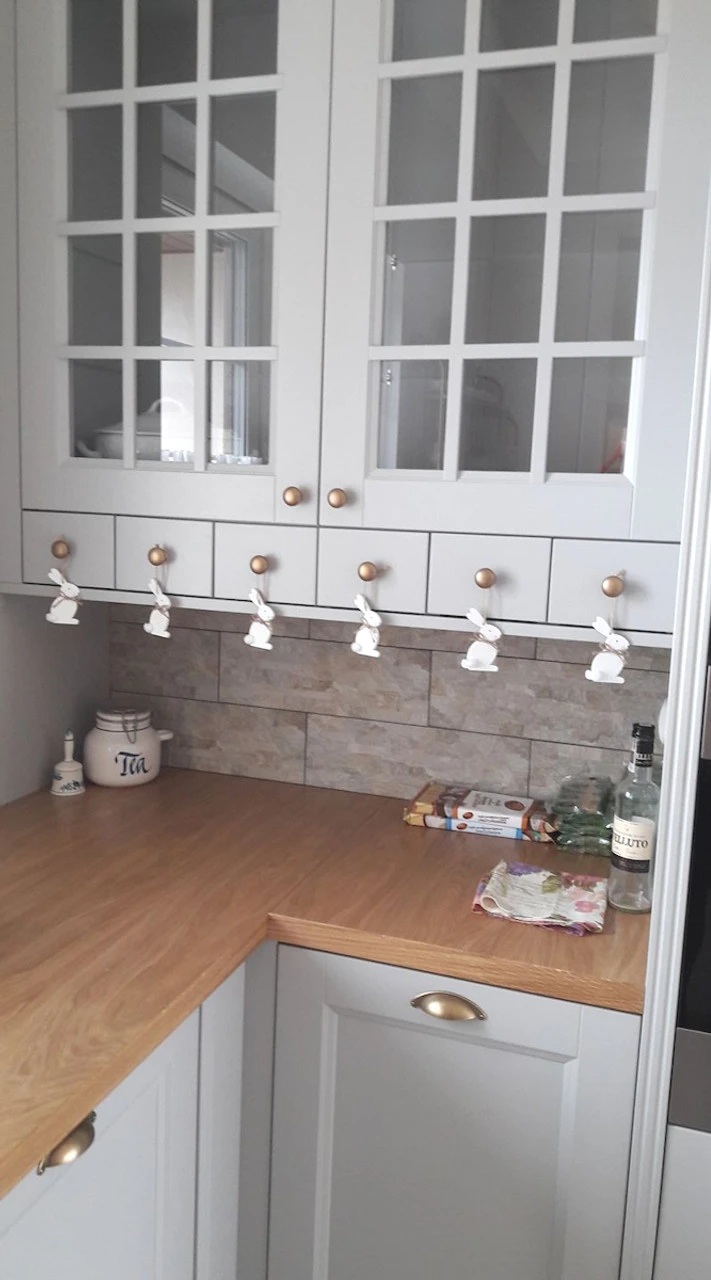 Colonial Antique English Knob 1 1/4″ Diameter This Antique English knob lends a richness and mellow Colonial temper to any dcor. We have some beautiful in use photos of this knob with it’s matching antique english cup pull (DL-P2636AE-16) from a customer’s kitchen in Poland! Barbara sent us these beautiful photos of her farmhouse style kitchen and we couldn’t be happier!