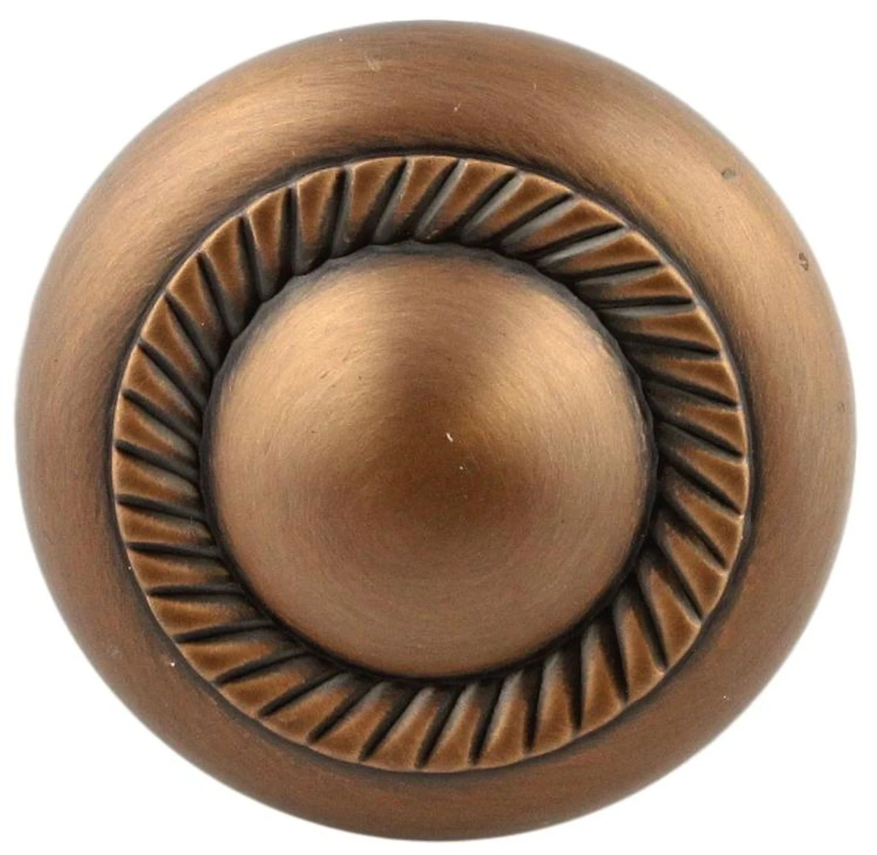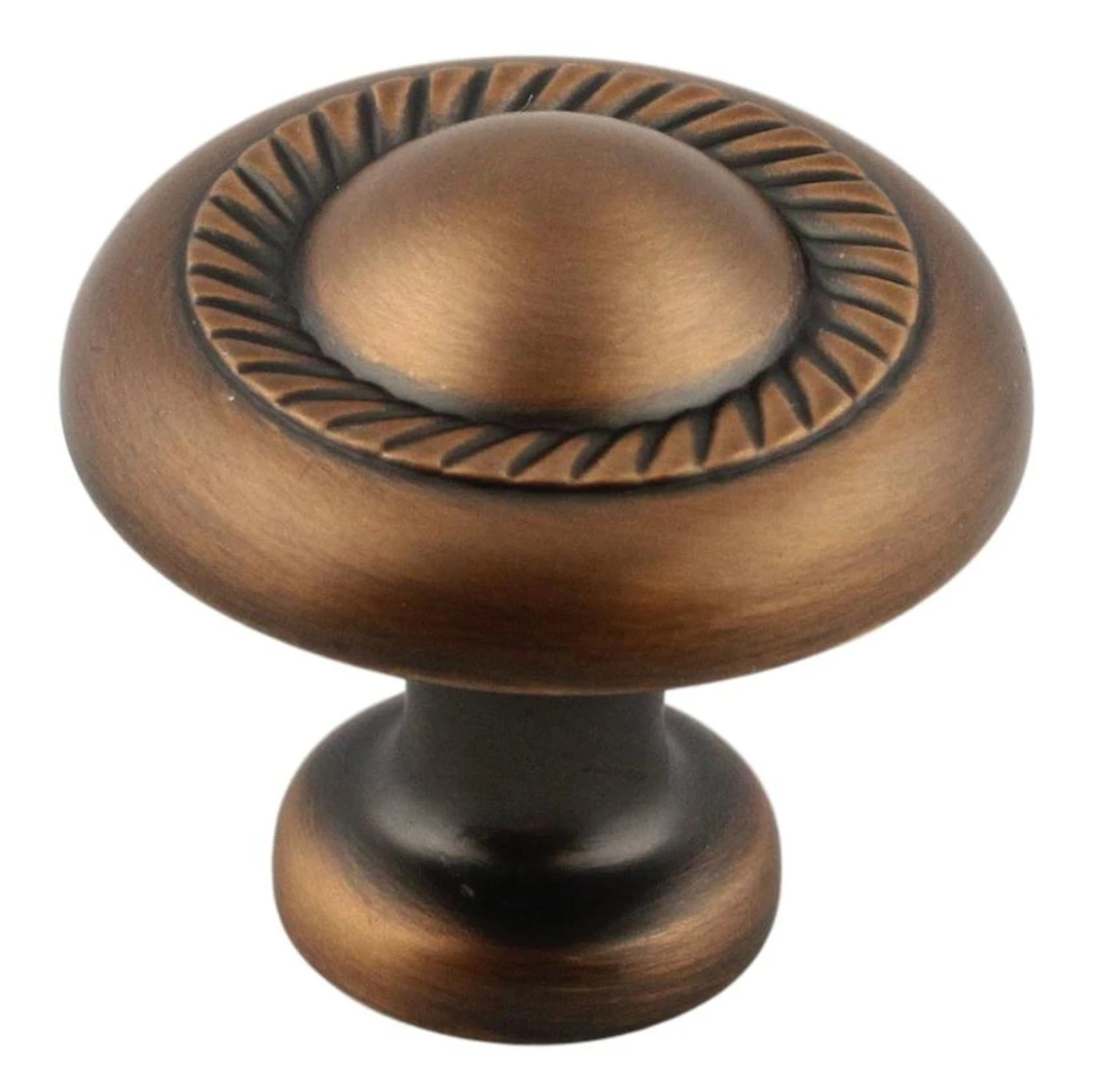 This beautiful rope accent Heritage style knob in antique copper is a wonderful complement to any older style kitchen.