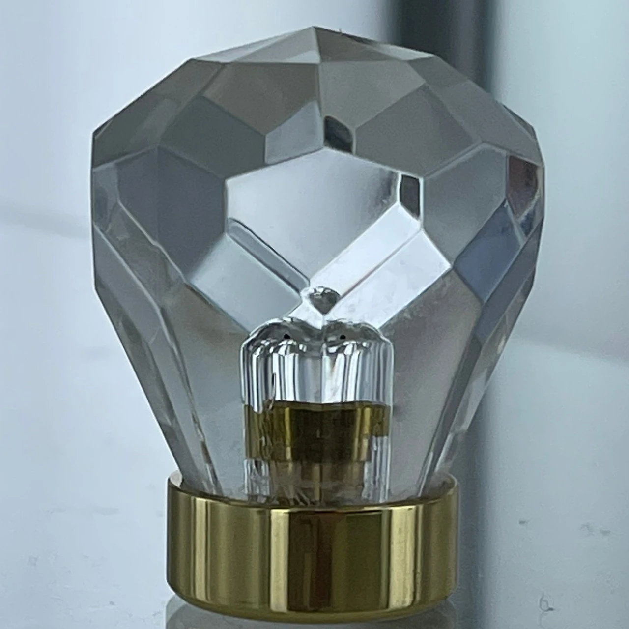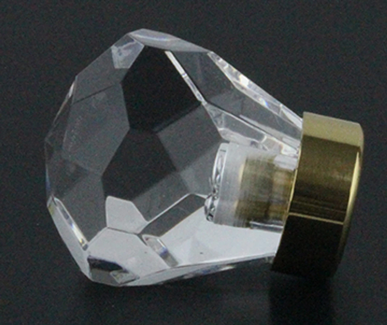 1-1/8″ Crystal Acrylic Diamond Cut Clear Knob. Gracious faceted crystal clear acrylic knob looks like it belongs on a ring. Polished Solid Brass metal base. This inexpensive knob can look absolutely fabulous on the right piece of furniture. You can see it’s true in the additional images from the furniture makeover blog Number Fifty-Three.