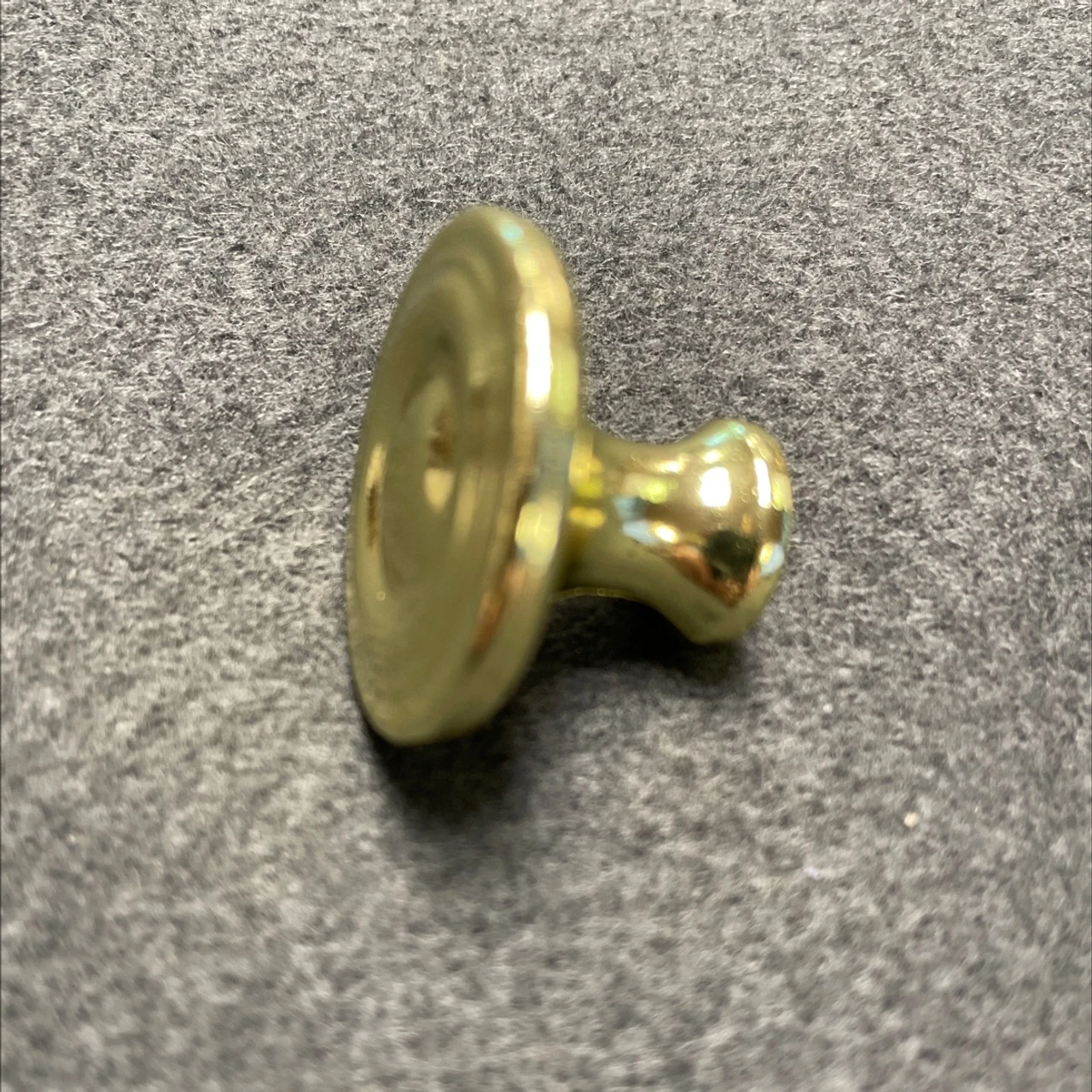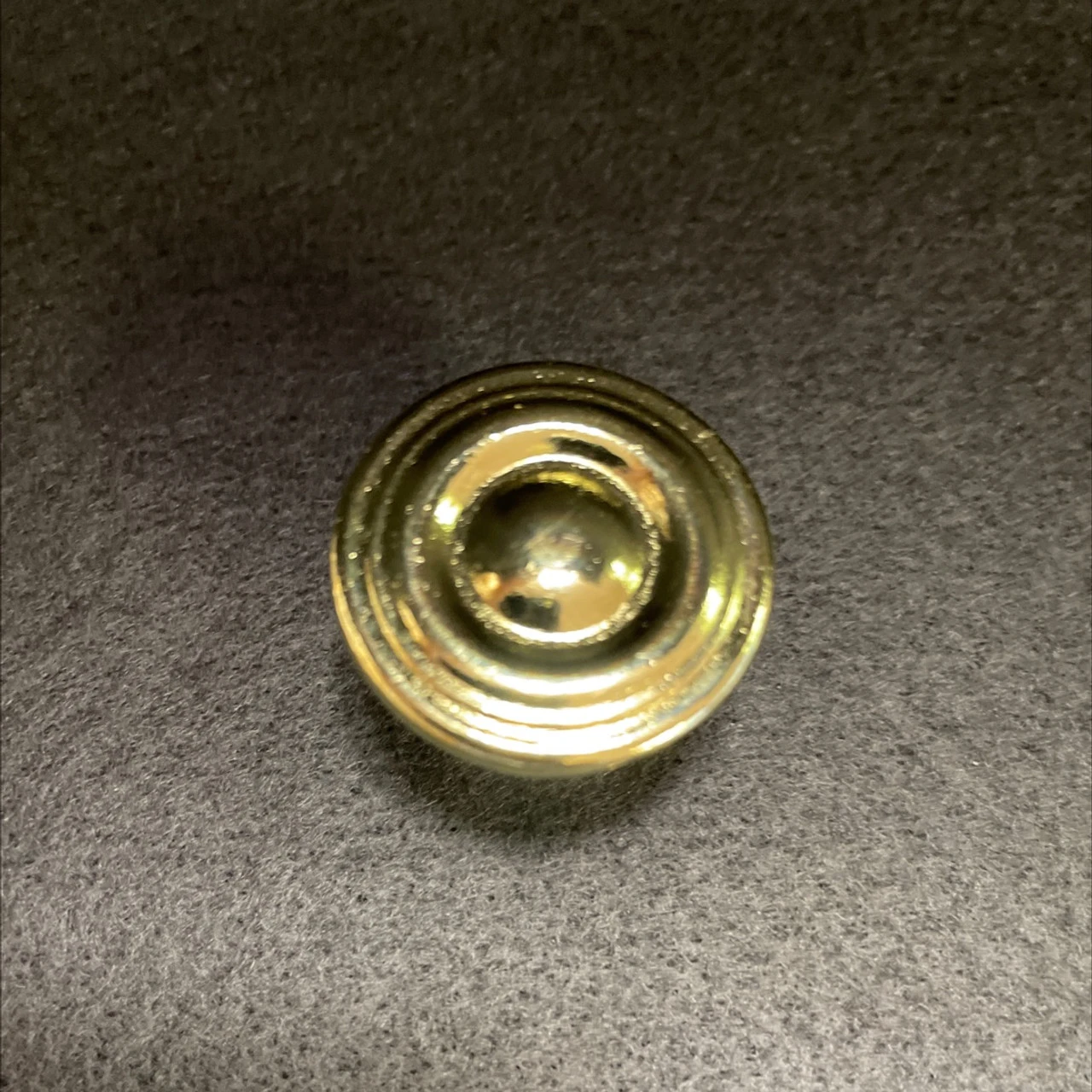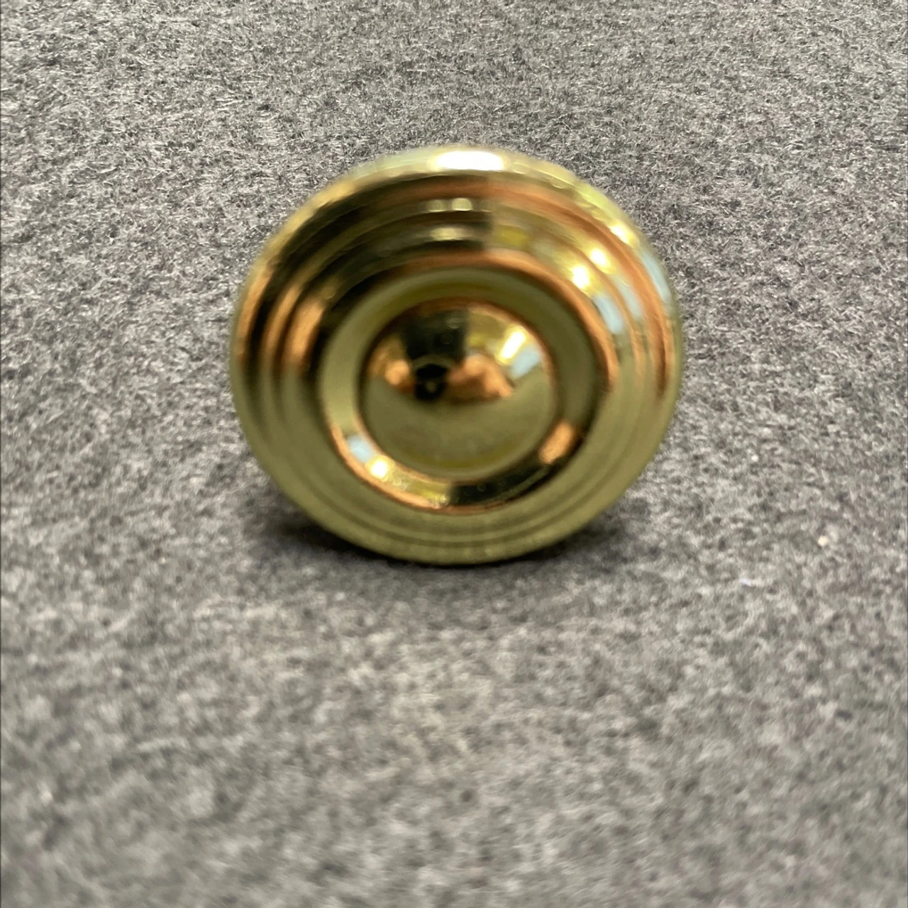 Brass plated knob with circular design and raised center. This is a very heavy and substantial bright brass plated knob at a great price. Normally sells for over $2.00.