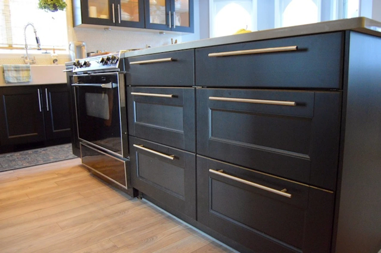 Outstanding Stainless Steel Bar Pull Alternative. Solid steel bar pull finished in beautiful and durable satin nickel. Bauhaus. Long and elegant bar pulls make a statement when used on your projects. The additional images feature this collection of satin nickel bar pulls as seen on the DIY and decorating blog My Five Men.