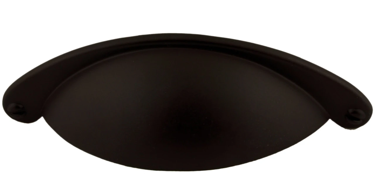 This oil rubbed bronze cup pull is part of the D. Lawless Hardware Country Store Collection of cup pulls and matching knobs. This simple oil rubbed bronze cup pull has realistic looking screw heads on the front to give this cup pull a convincing old bin pull flavor. The cup pull is actually attached from the rear as with any standard drawer pull.
