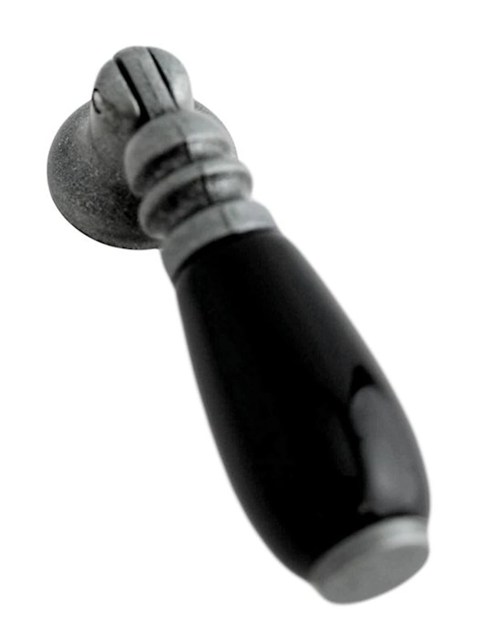 Teardrop Pendant Drop Pull – Black Ceramic & Antique Pewter
