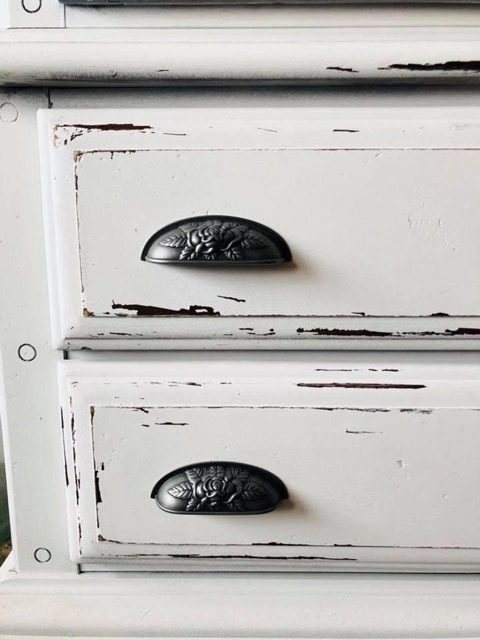 Rococo Revival, 1845-1870: This design style features the use of scrolls, either in a C shape or the more fluid S shape. Carved decoration and hardware was in the form of scallop shells, leaves and flowers,and particularly roses.