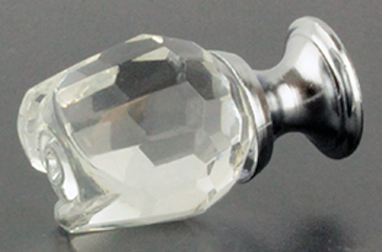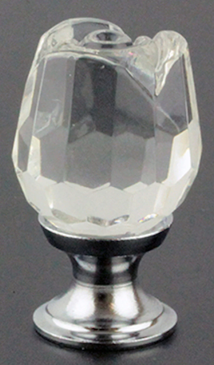 This Crystal Rose Knob reflects light from a polished chrome base. A sturdy, but delicate-looking, beauty in hand-pressed crystal glass.
