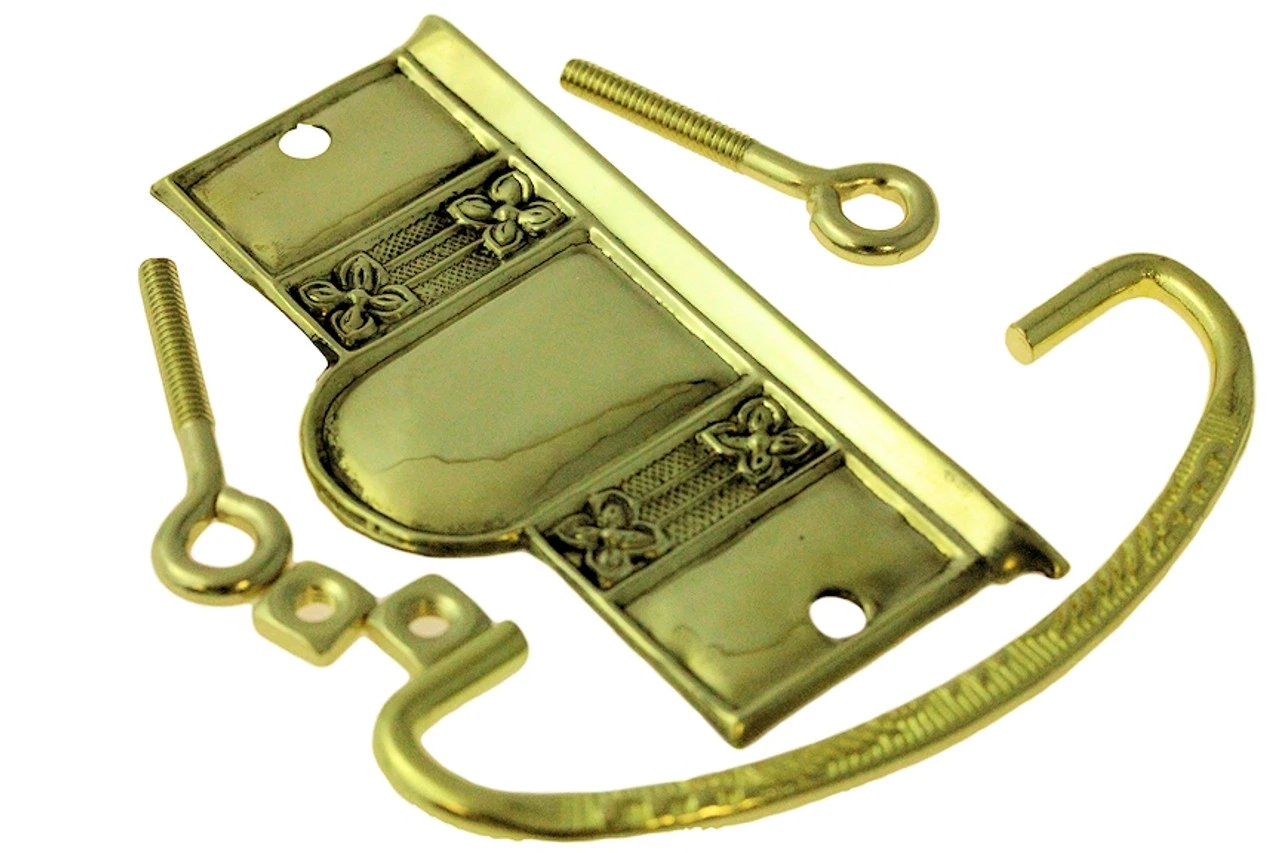 Pull consists of stamped solid brass plate and bail and two brass plated eye bolts and two zinc plated nuts just like the original Victorian pulls.