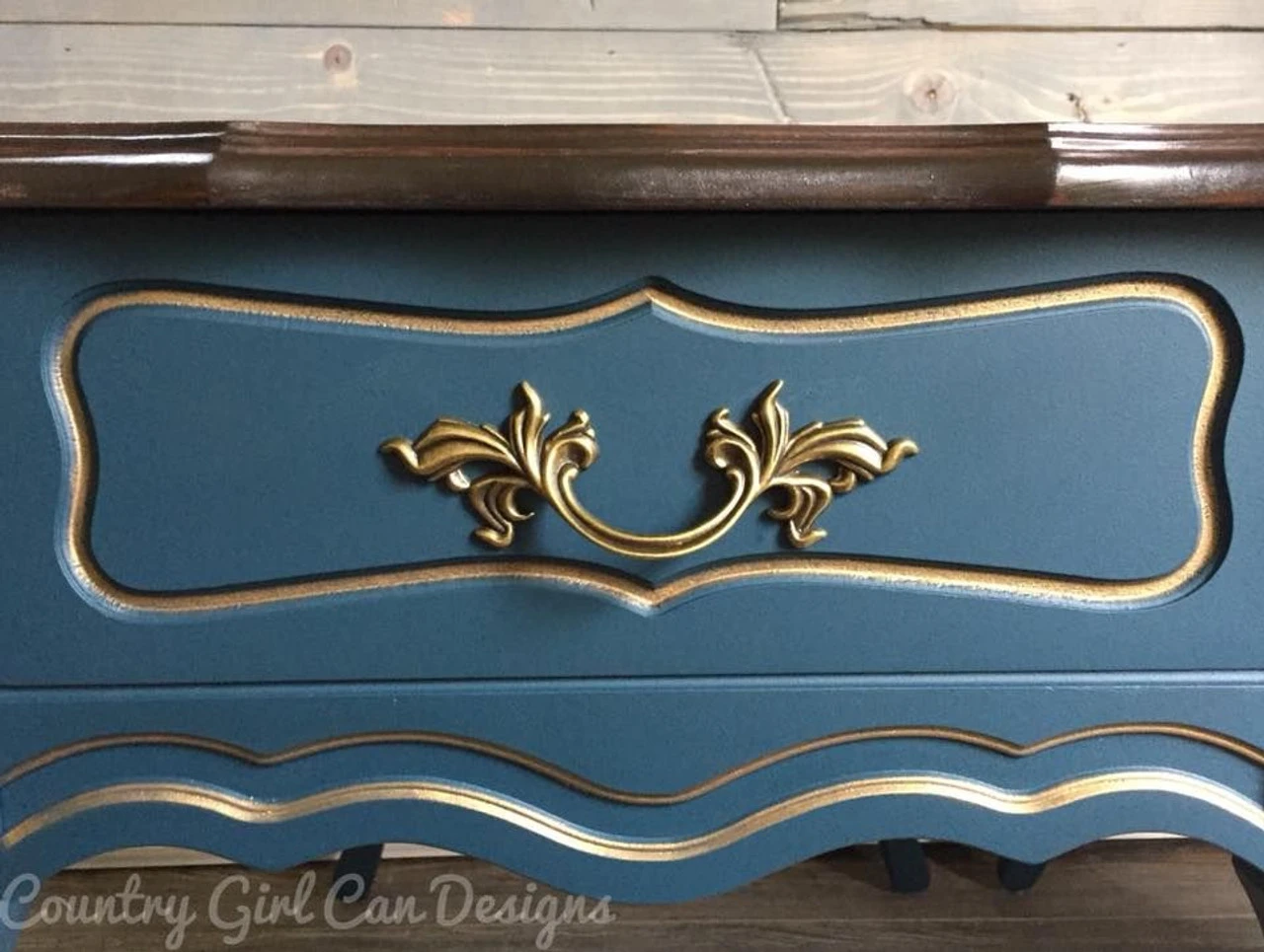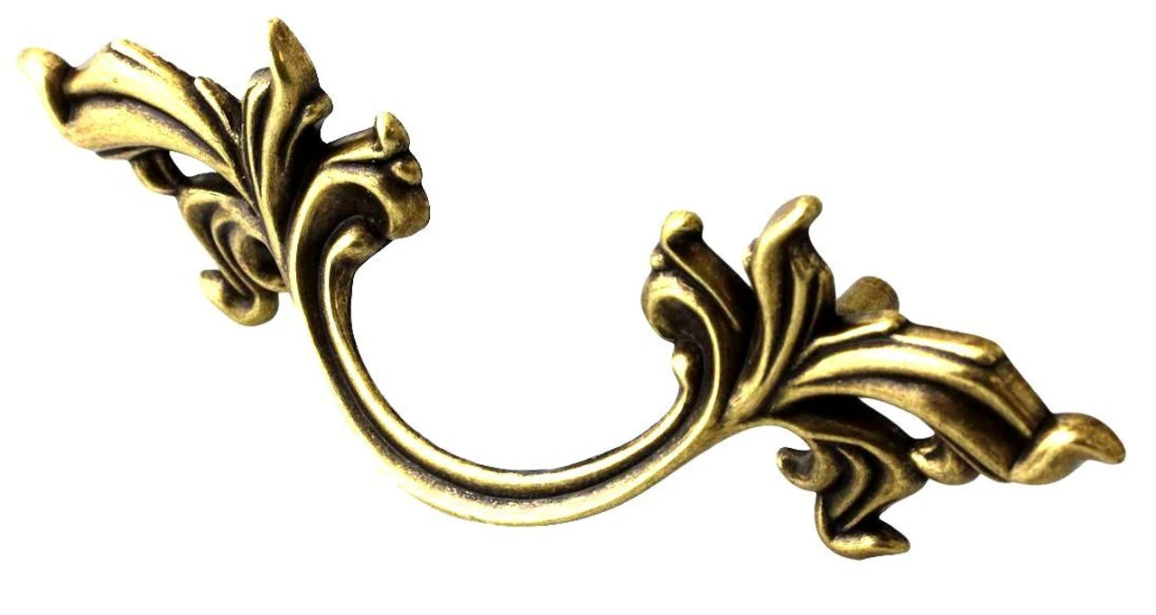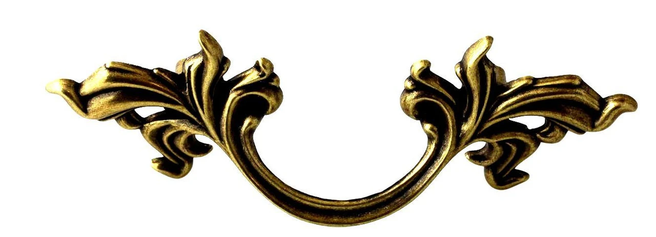 Here they are. You asked us to reproduce this pull. We did one better. We located the original mold. These French Provincial pulls are indistinguishable from the original production runs. Hope you like them! Of course now the pictures we have of them mounted on furniture will need an update since the original was in brass plated finish. French provincial die cast pull in an antique brass finish. This pull is shaped in a leaf design and would add a wonderful flair to any door or drawer. In the additional images you can see this antique brass pull in used by some very talented people at Rebel Refurnishing, Elbow Grease Vintiques, & Country Girl Can Designs!