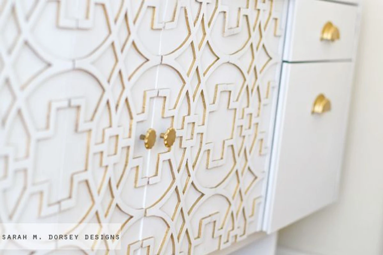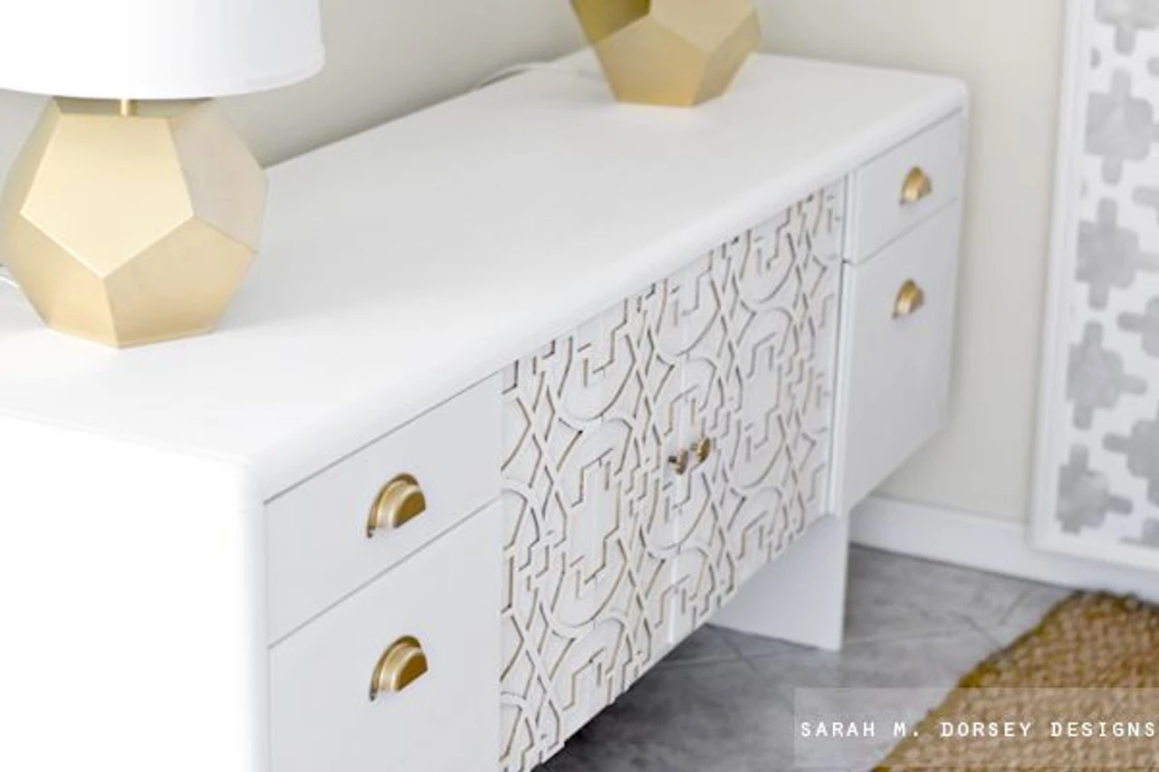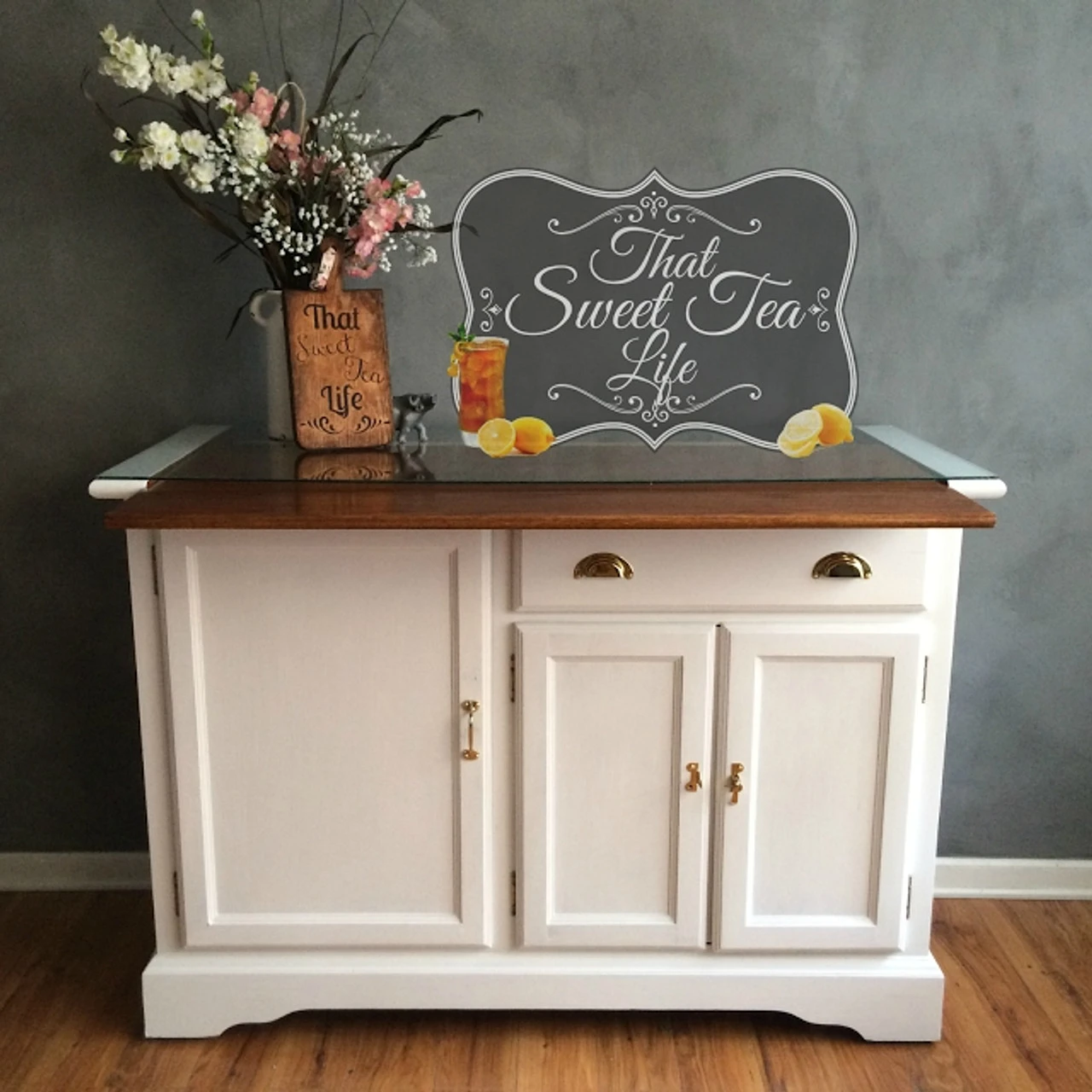Solid polished brass cup pull, Hoosier style. This cup pull is not only a great replacement pull for Hoosier hutches, it will add a country or utility look to any drawer or door. Pull is an exact reproduction of old Hoosier pulls. It is Stamped from sheets of solid brass just like the old ones. This beautiful brass cup pull was recently used alongside an antique copper knob (AM-TN497ABS) on a white credenza makeover on the DIY blog Sarah M. Dorsey Designs as seen in the additional images. The group shot of this cup pull and the white ice box style project with matching hardware from our Hoosier section comes from That Sweet Tea Life. Link to full length article in the Technical Information.