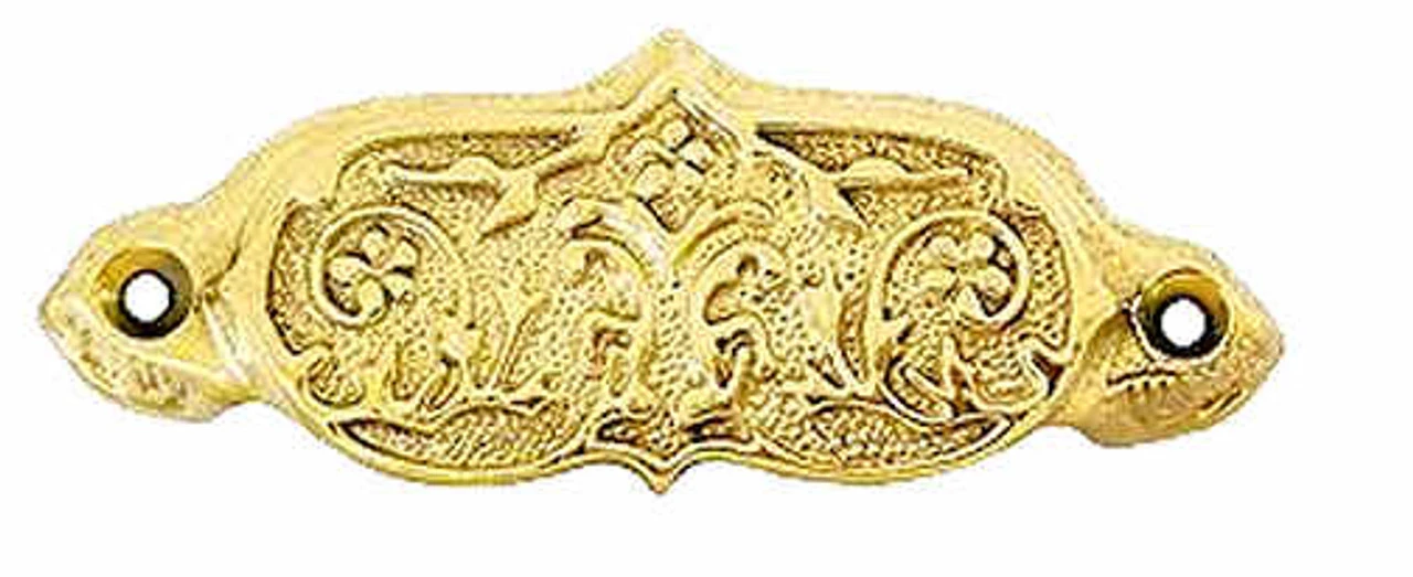 Victorian Era Historic Reproduction Solid Brass Bin Pull cast in solid brass. Mounts from front. Unfinished brass ages naturally or may be treated for faster aging.