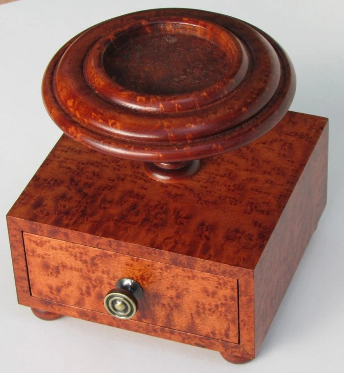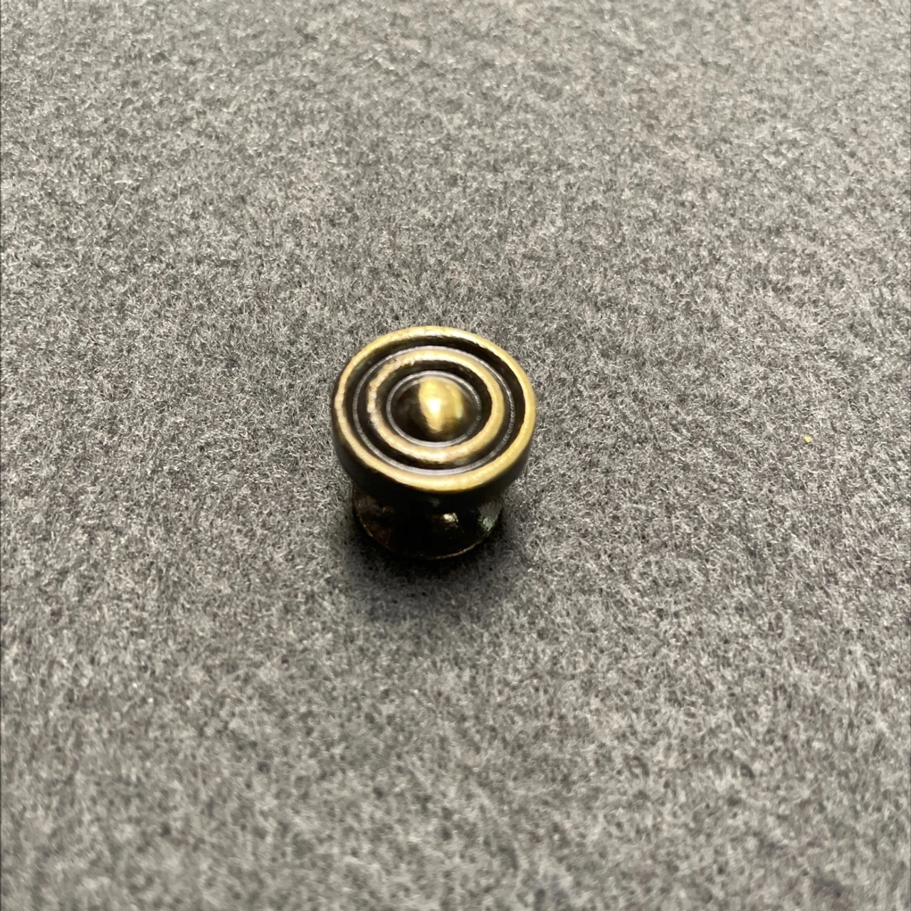 Knob Antique Brass with Concentric circles. An antiqued 5/8″ brass knob that will work nicely on small drawers and doors found on jewel cases and desks. The additional images are from Richard T. Hyers Woodworking as used on a beautiful handcrafted sewing box. See more of his work at hyerswood.com.