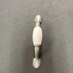 Angelfish Knob, recessed areas are filled with a luxuriant flat black. The raised areas and outside of the knob are a brushed satin pewter, a beautiful darker than silver color. A refined looking knob and will make any project look great.