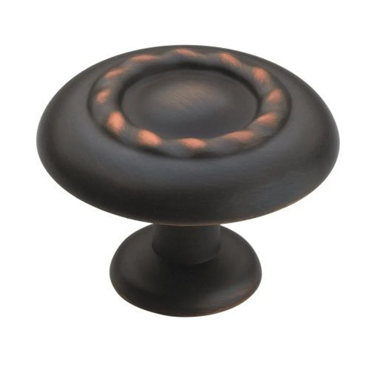 Rope Twist design makes this large oversized knob a beautiful, simple and elegant addition to any door or drawer. Oil Rub Bronze gives the appearance of timeworn metals and timeless elegance. For kitchen, bath, cabinets, or furniture. Diameter: 1-3/4″ (31.75 mm) Projection: 1-3/16″ (30mm) Finish: Oil Rub Bronze Comes with 1″ screw suitable for 3/4″ drawer or door face. Amerock Hardware