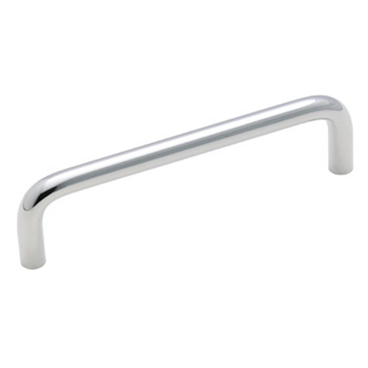Attractive European style chrome pull for kitchen cabinets doors or drawers.
