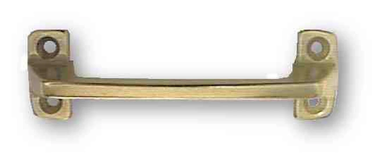Satin Brass Handle. Attaches to cabinet doors or drawers or trunk lids, etc.