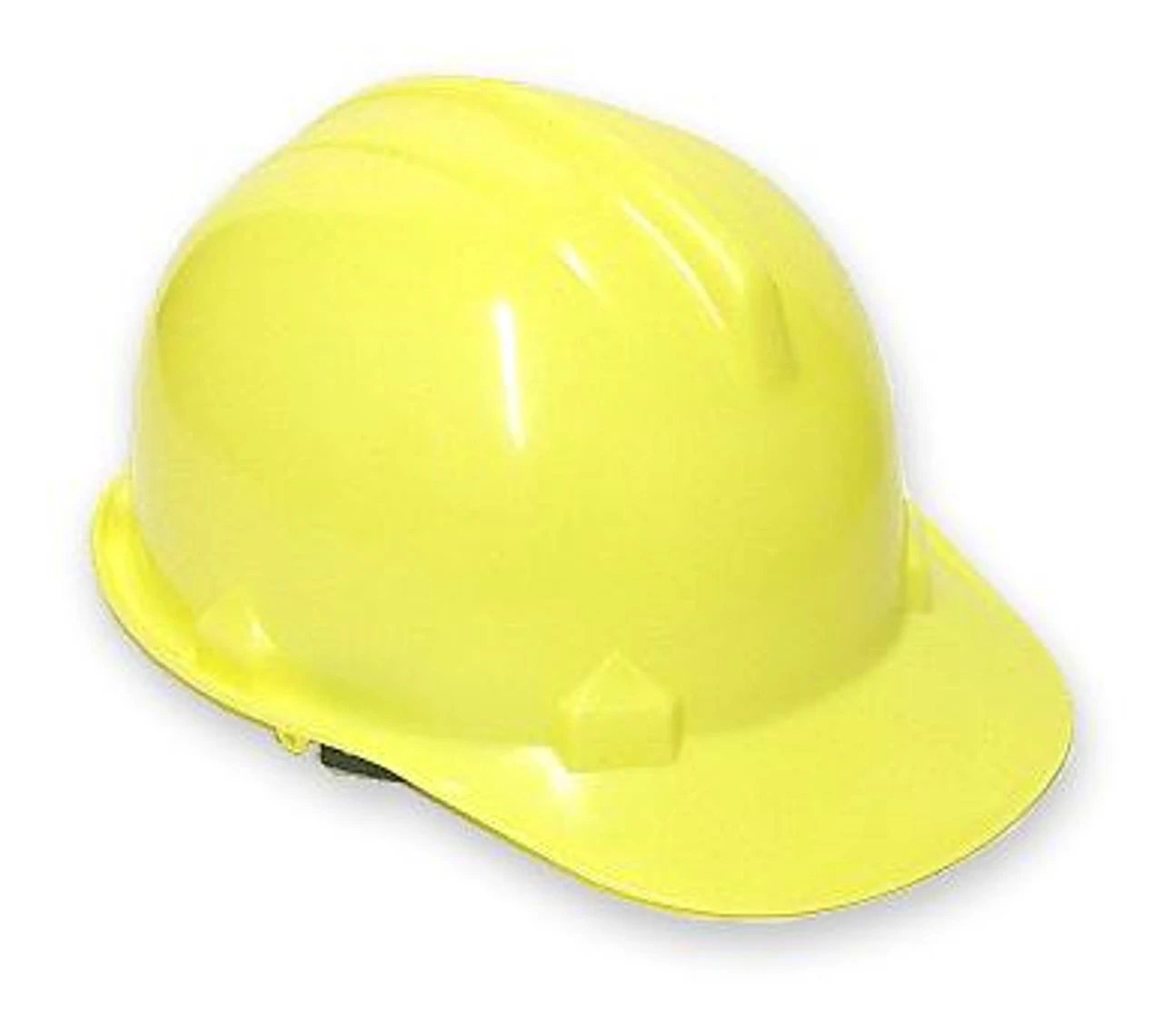 Hard Hat from OA Cabot Safety Corporation. International Yellow. 6-point pinlock nylon suspension. Cushioned, washable sweatband. Two level heighth adjustment, self-centering. ANSI Type 1, Class E compliant.