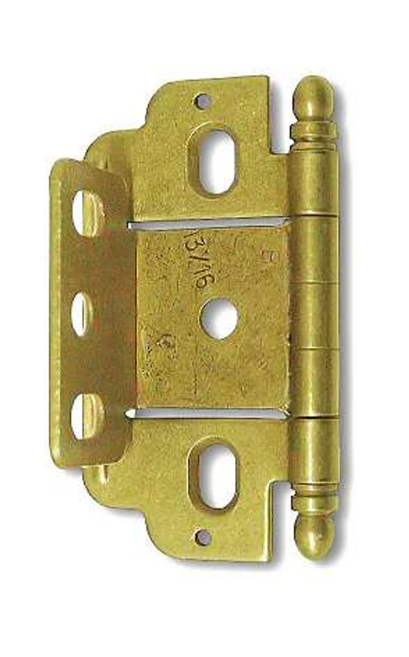 This is a non-mortise, single wrap-around (wraps around the back of the door for extra support) hinge with decorative finials. This hinge is for a 13/16″ door. The hinge has 4 adjustable slots for screws and comes with the screws necessary for mounting. The hinge can be adjusted using the slotted screw holes and locked into place using the 2 non-adjustable holes. This hinge is for use on a face-frame or frameless cabinet. For flush door mounting. Not for overlay doors. Basically functions like a decorative butt hinge with added support for the door.