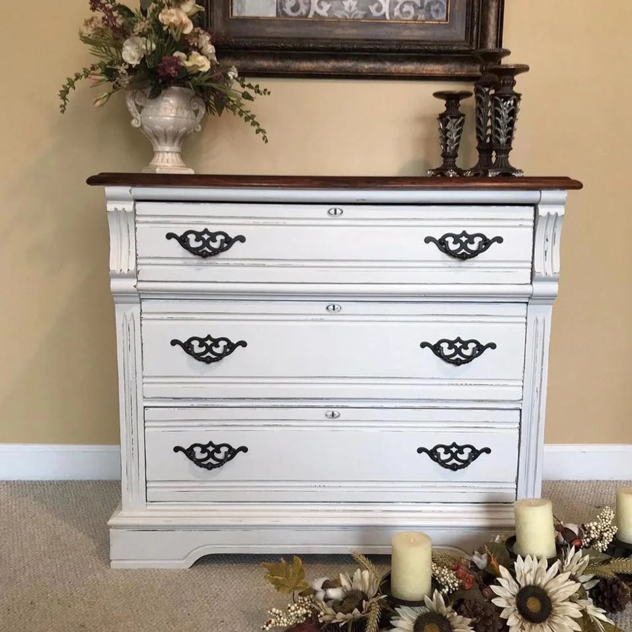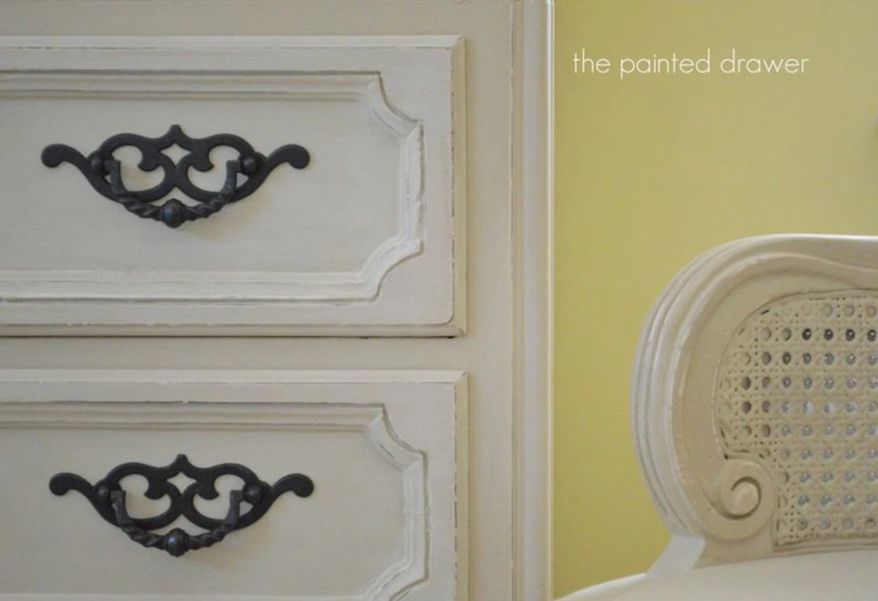 This beautiful dark antique brass pull has a hand-twisted effect on the bail section of the pull. This wrought iron appearance and the distressed worn finish bring a touch of rustique to any door or drawer. Antique Bronze gives the appearance of timeworn metals and timeless elegance. Apparent abrasions on this pull are a desired effect to perpetrate the illusion of age. For kitchen, bath, cabinets, or furniture. For casual and relaxing atmospheres and hearth and home comfortable motifs. Recently used on a beautiful cabinet makeover at the furniture design blog The Painted Drawer as seen in the additional images. Featured a second time from a local furniture restoration shop Restoration Studios on Sheridan in Peoria, IL. This project shows this bail pull in use with small pewter knob LQ-P15075C-PEO-C. This knob will look great also L-P27602-WI-C. And one more from Willow Road Cottage! Thank you Catherine!