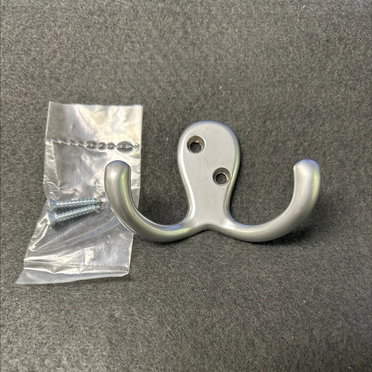 Simple but elegant Matte Chrome finished double pronged hook.