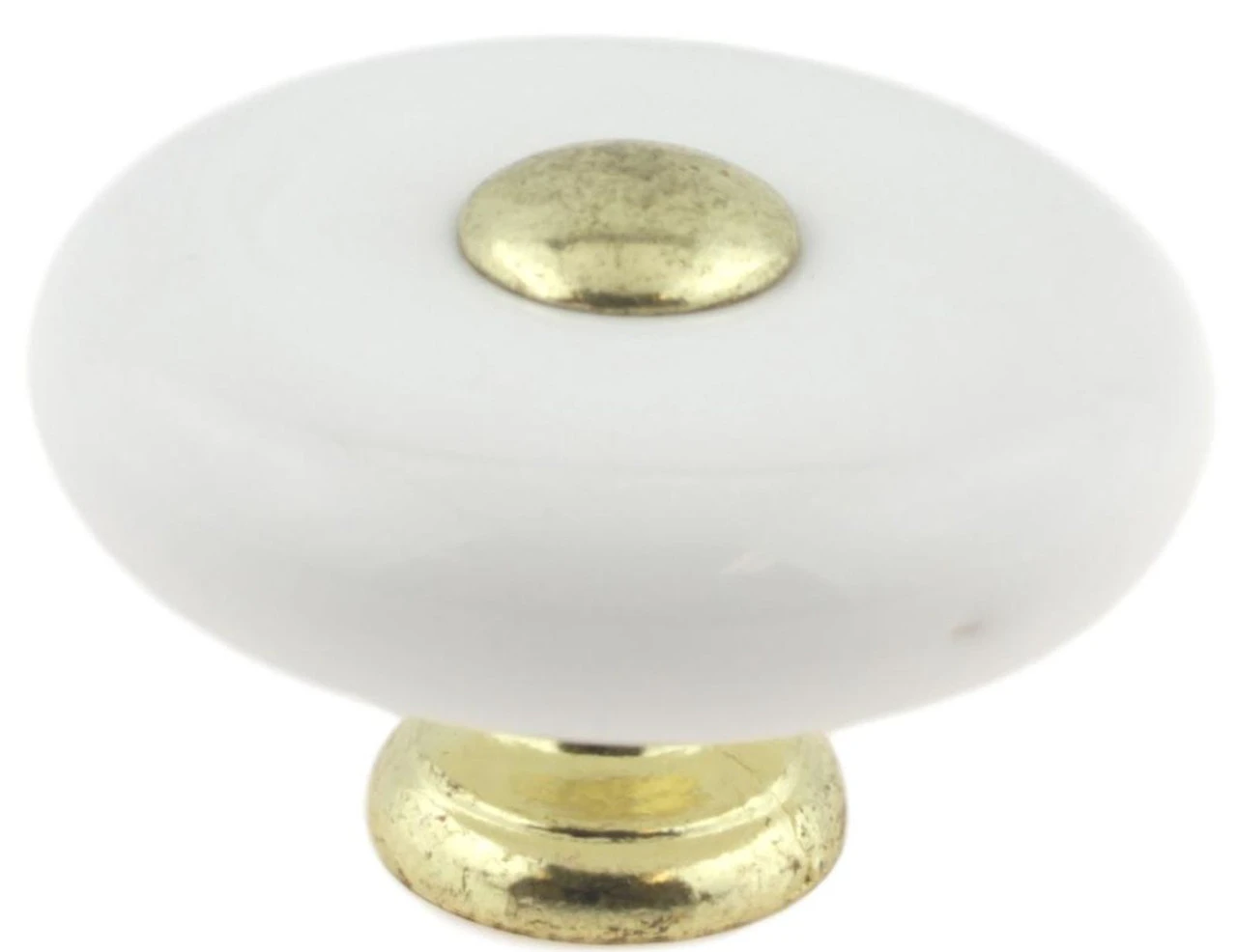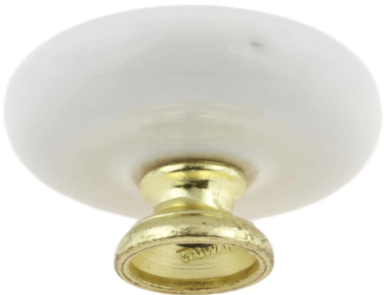 This nice large White Ceramic Knob with a Center Brass Button and a Brass Pedistal