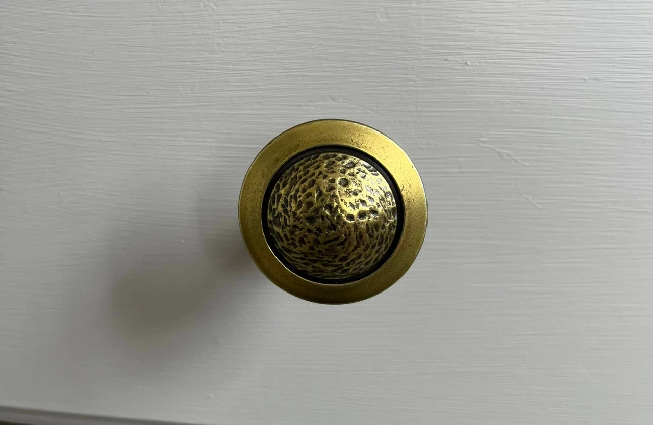 Betsy Fields Rough and Smooth Antique Tumbled Brass Knob. This little beauty will give service and great looks for years to come. This nice antique brass knob was recently used on a dresser makeover on the DIY blog Create and Babble as see in the additional images. Used again by Facebook furniture makeover artist Re-imagined by Lindsay in the second set of photos!