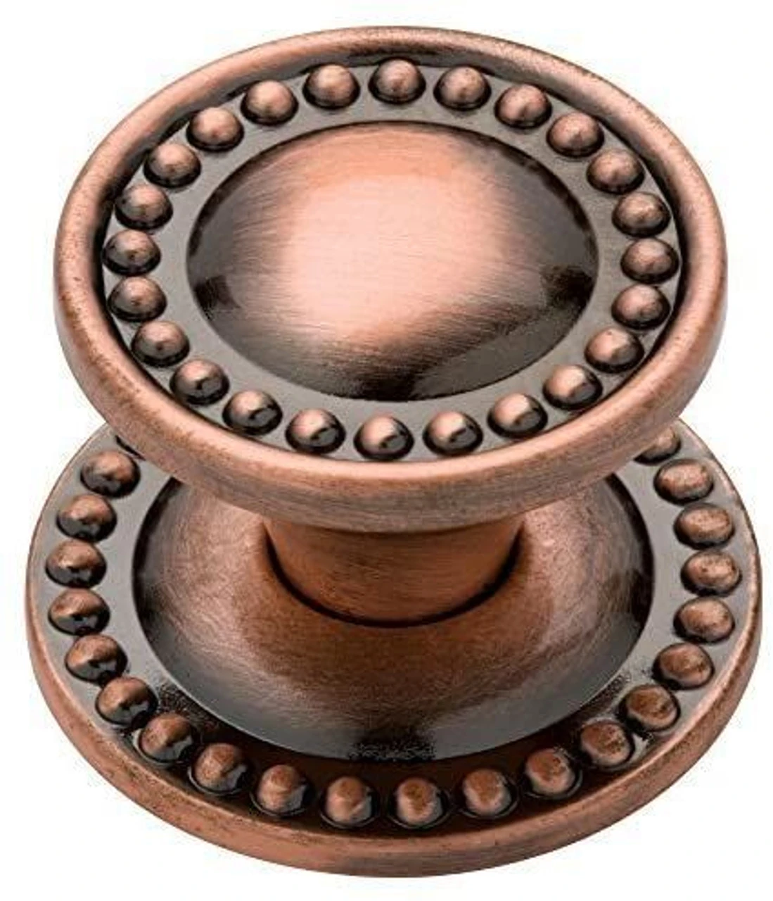 Brushed Satin Red Copper Knob and Backplate with Beaded Relief