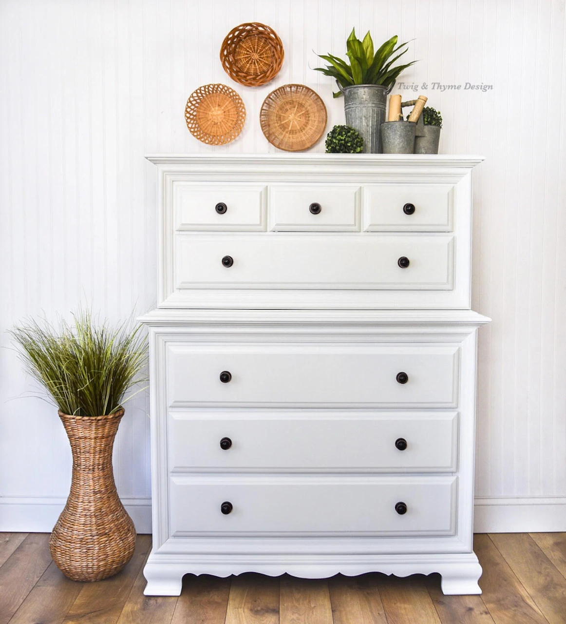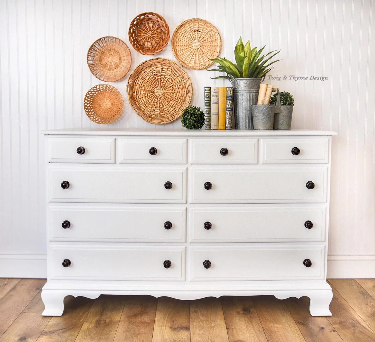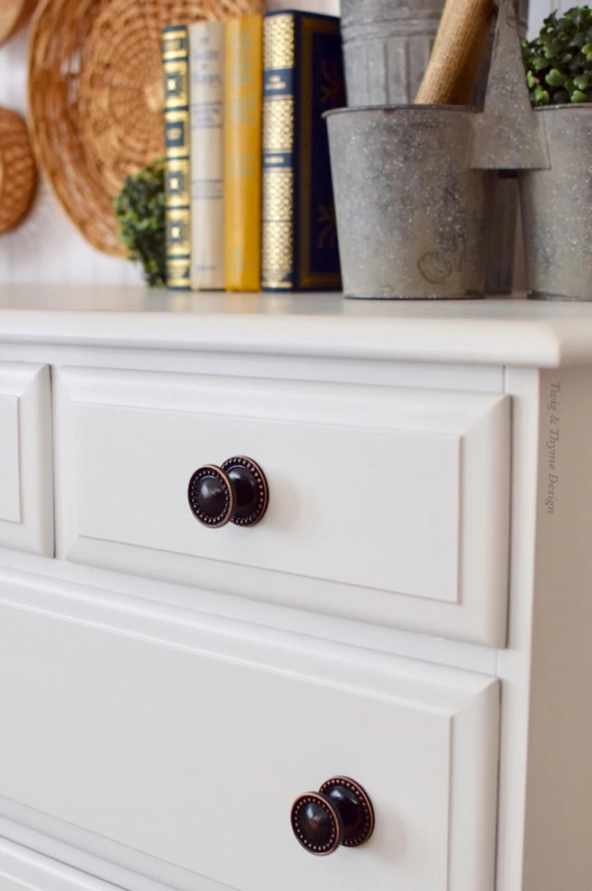 Lucky us! We have three photos of this lovely little back plated knob in Venetian Brinze from Twig & Thyme Design! The two dresser are gorgeous and the knobs give the perfect contrast!