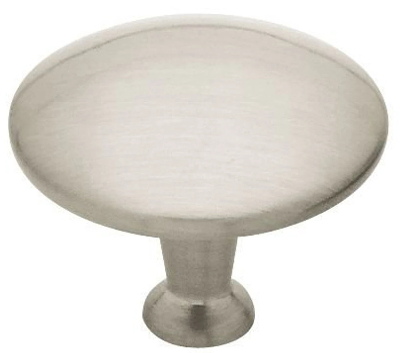 Small, straight forward, satin nickel knob.