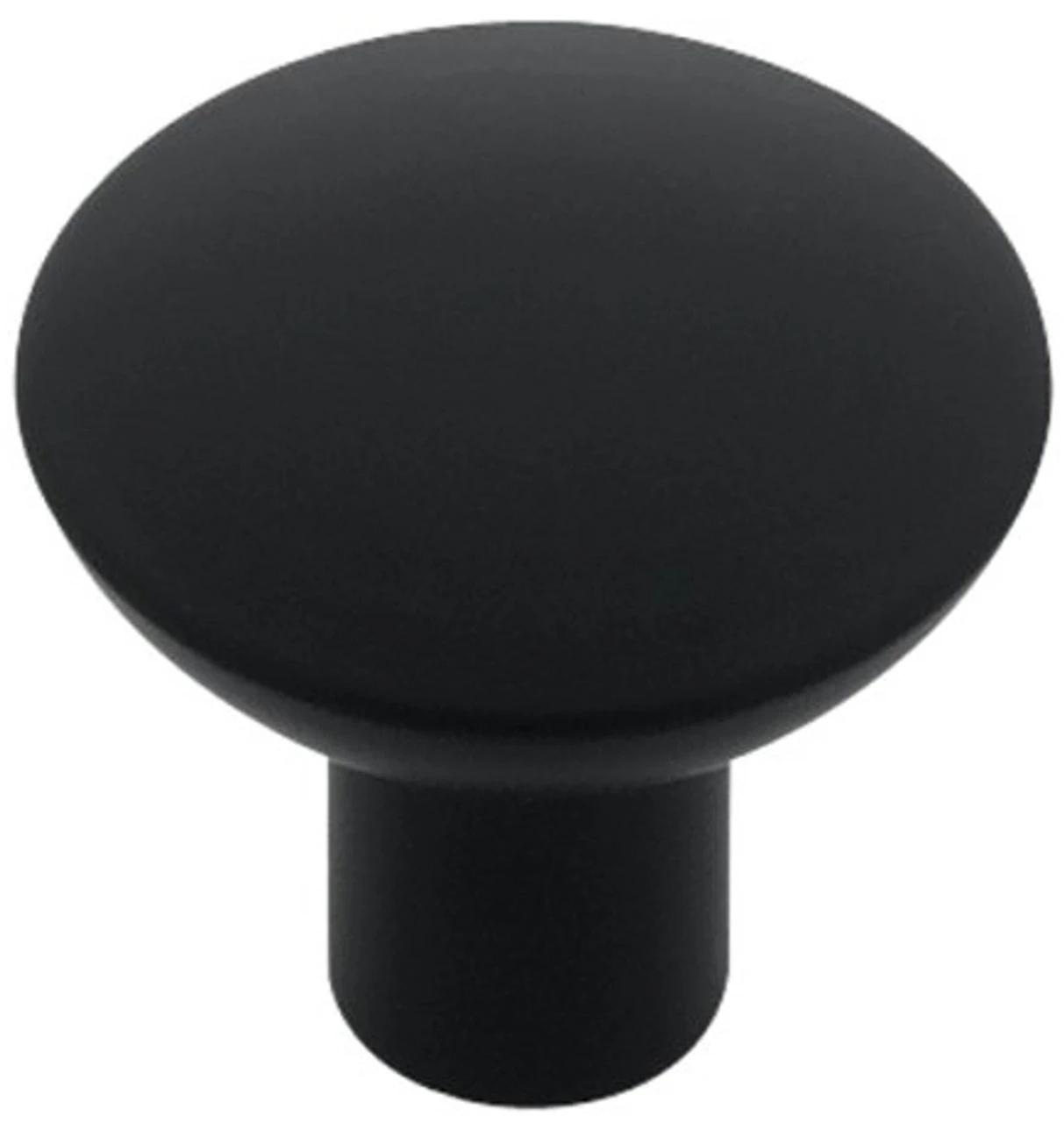Martini Design Flat Black Knob 1 1/4″ A stylish knob that goes with many of our flat black pulls. Complete your look with this knob and our pulls for a fashionable project finished just the way you want.