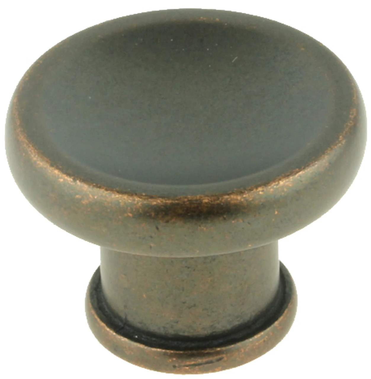 A classic oil rubbed bronze (or some call it venetian bronze as the copper tends to show a bit more) knob from Liberty Hardware.