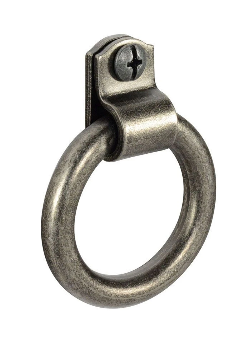 This simple ring pull is just the thing for simple, classic or farmhouse style pieces. Comes in a beautiful antique pewter finish. 1 3/4″ diameter. Comes with mounting hardware. Liberty Hardware
