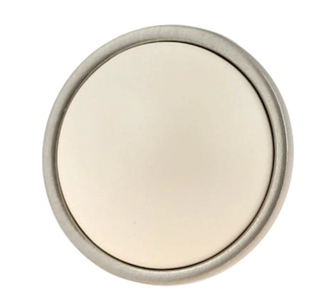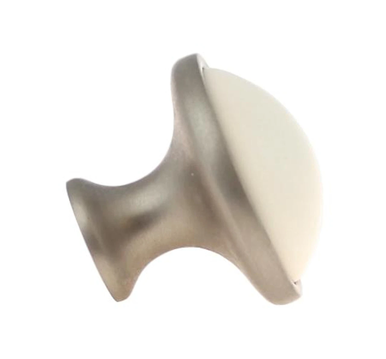An elegantly simple knob in brushed pewter with bisque ceramic center that will make you look like a professional designer.