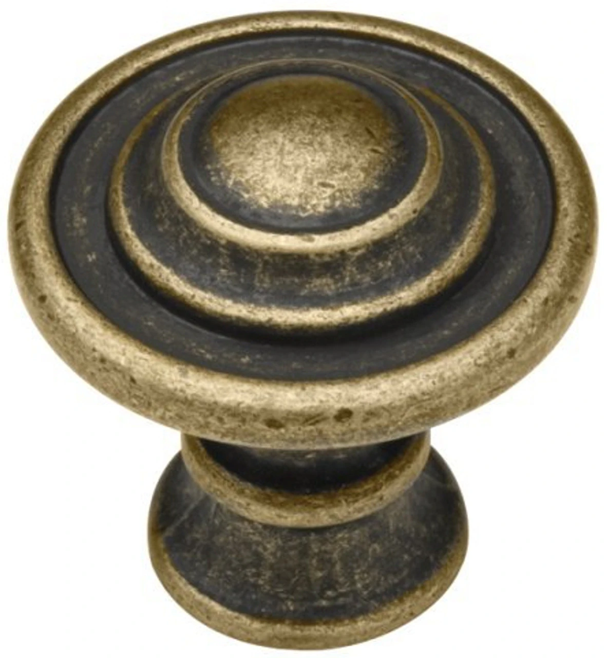 Knob Burnished Antique Brass 35Mm Diameter If you like that traditional look this would be your choice. These knobs have an aged look with brass undertones showing through. You could call it a distressed look. Look for other knobs and pulls with the “BAB” color code or search by collection ” Kentworth Collection” to find the whole collection.
