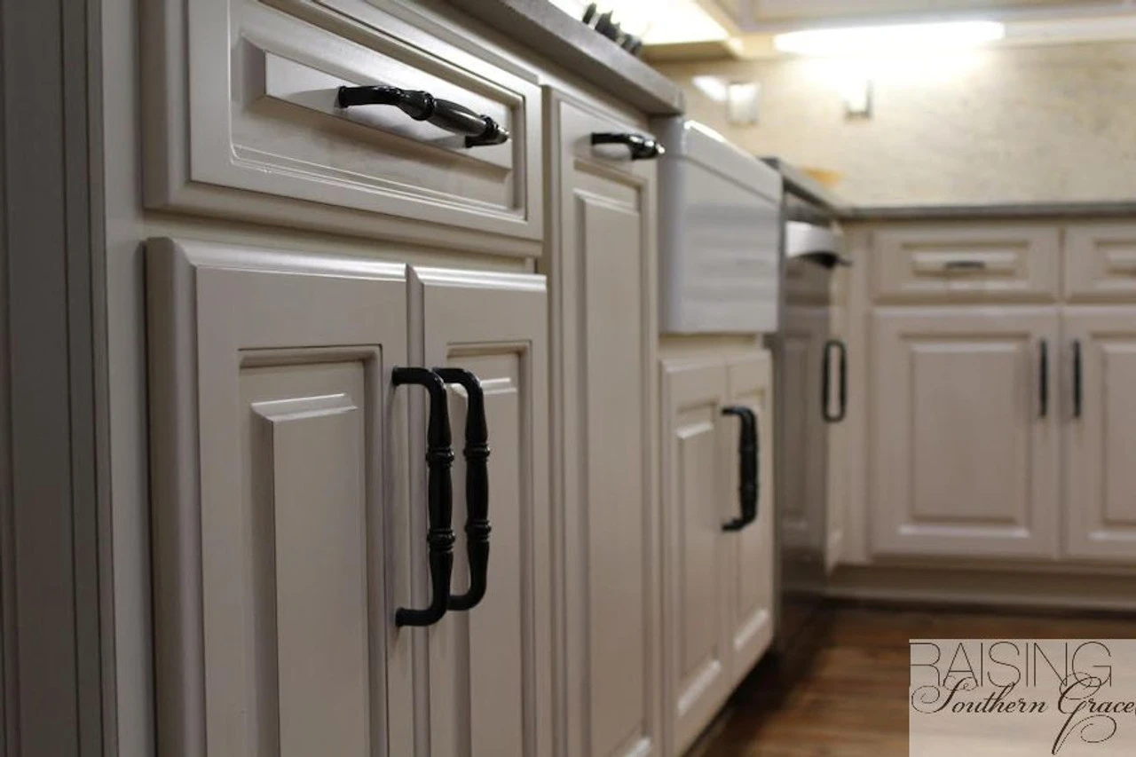 If you like that traditional look this would be your choice. These knobs have a brushed look with bronze undertones showing through. You could call it a distressed look. Look for other knobs and pulls with the “VBR” color code or search by collection” Kentworth Collection” to find the whole collection. In the additional images you can see this collection in use on the home blog Raising Southern Grace.
