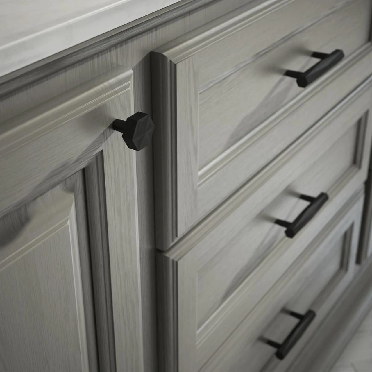 This matte black knob from Liberty Hardware features modern design while keeping it simple with the finish. Perfect for creating contrast between the hardware and the cabinets. Has a matching pull as well.