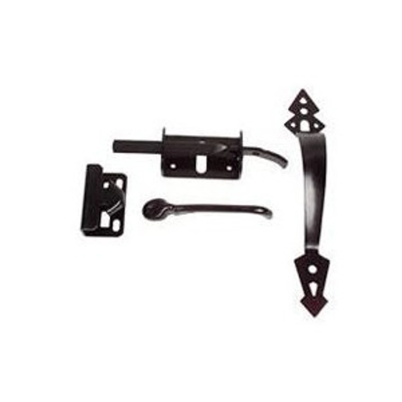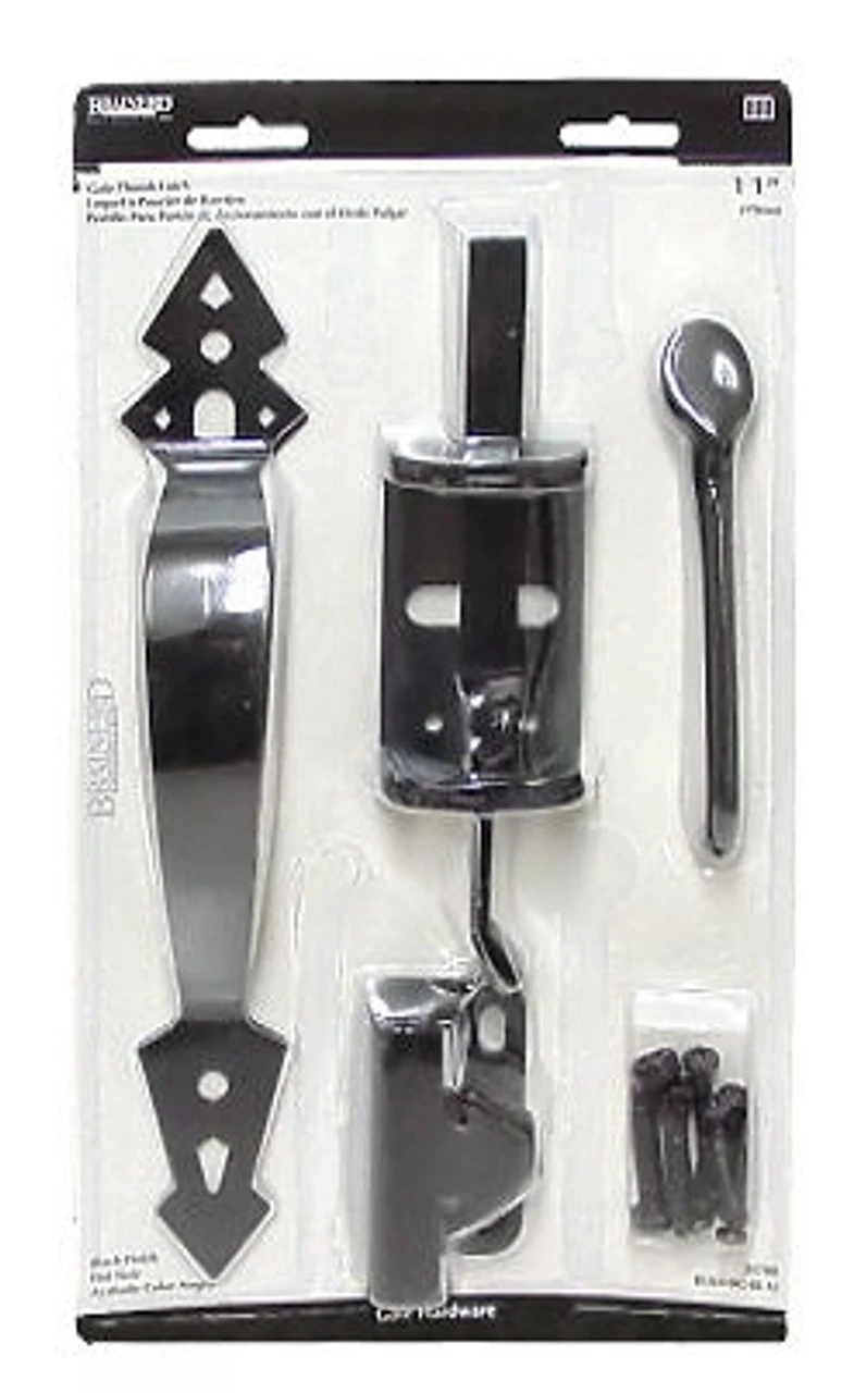 A positive slide bolt action locks gate or door from the inside and allows padlock use.