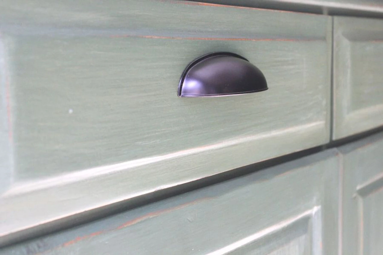 Liberty Cup Pulls II Collection features an array of great looking and substantial cup pulls and matching knobs. This pull will accommodate 2-1/2″ centers and 3″ centers on the same pull. This oil rubbed bronze finished cup pull makes for an outstanding decorative pull that will look good where ever it is used. This pull was also recently used on the design and DIY blogs Embracing Change and For the Love of Decorating. In the last Embracing Change project, this cup pull is paired with an oil rubbed bronze knob (L-PN0292-OB-C) on a lovely white China cabinet makeover. Featured again more recently at the budget conscious blog The Frugal Homemaker in a real nice kitchen makeover. In the images this cup pull is paired with another oil rubbed bronze pull from Liberty Hardware (LQ-P62310V-OB3-C). And a couple more photos from Blah to Ahh on a nice cabinet makeover!