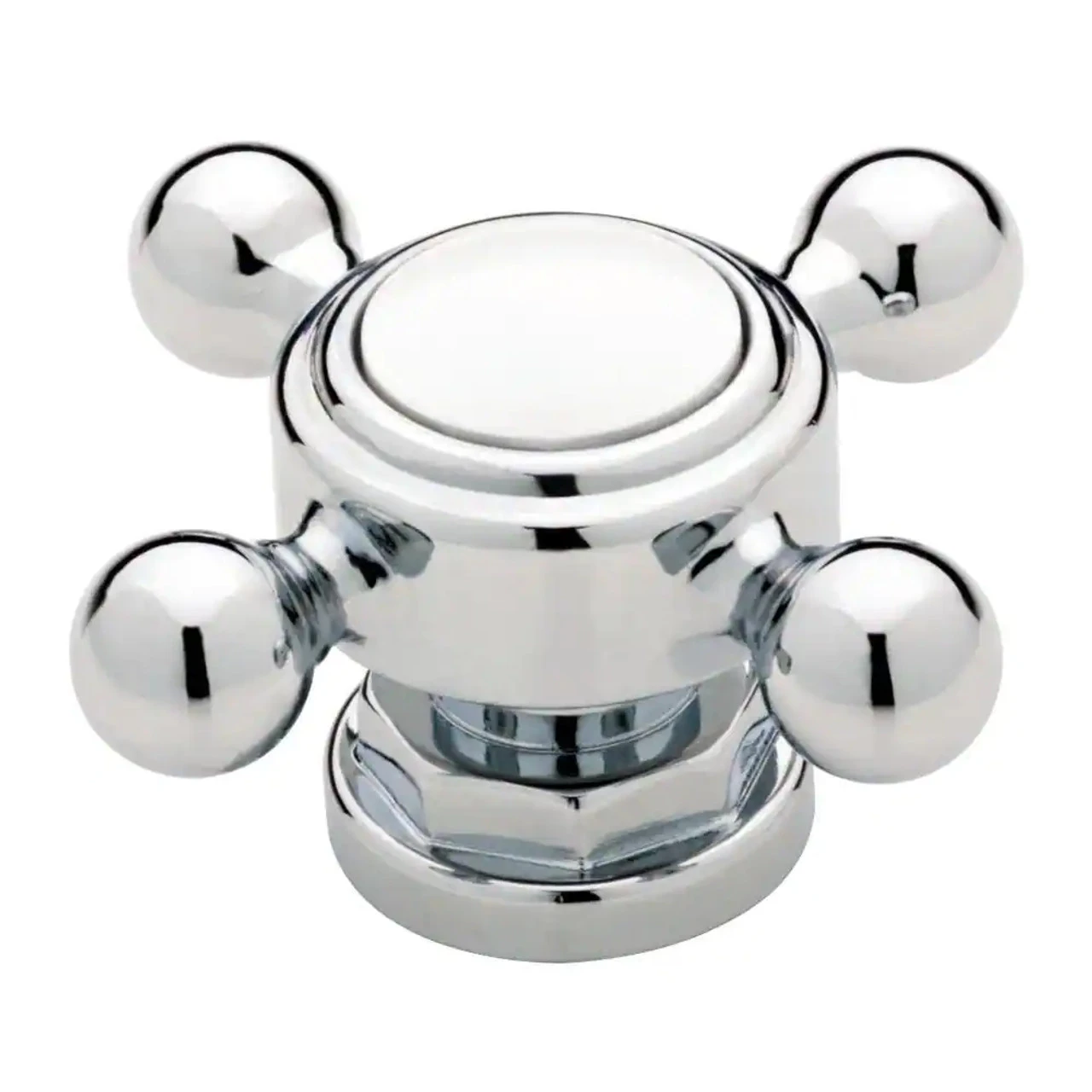 2 in. Faucet knob is inspired by vintage faucet and bathroom fixture design. Industrial style, the knob is accented with a polished chrome and white finish. Ideal for bathroom vanities or a customized hook rail.