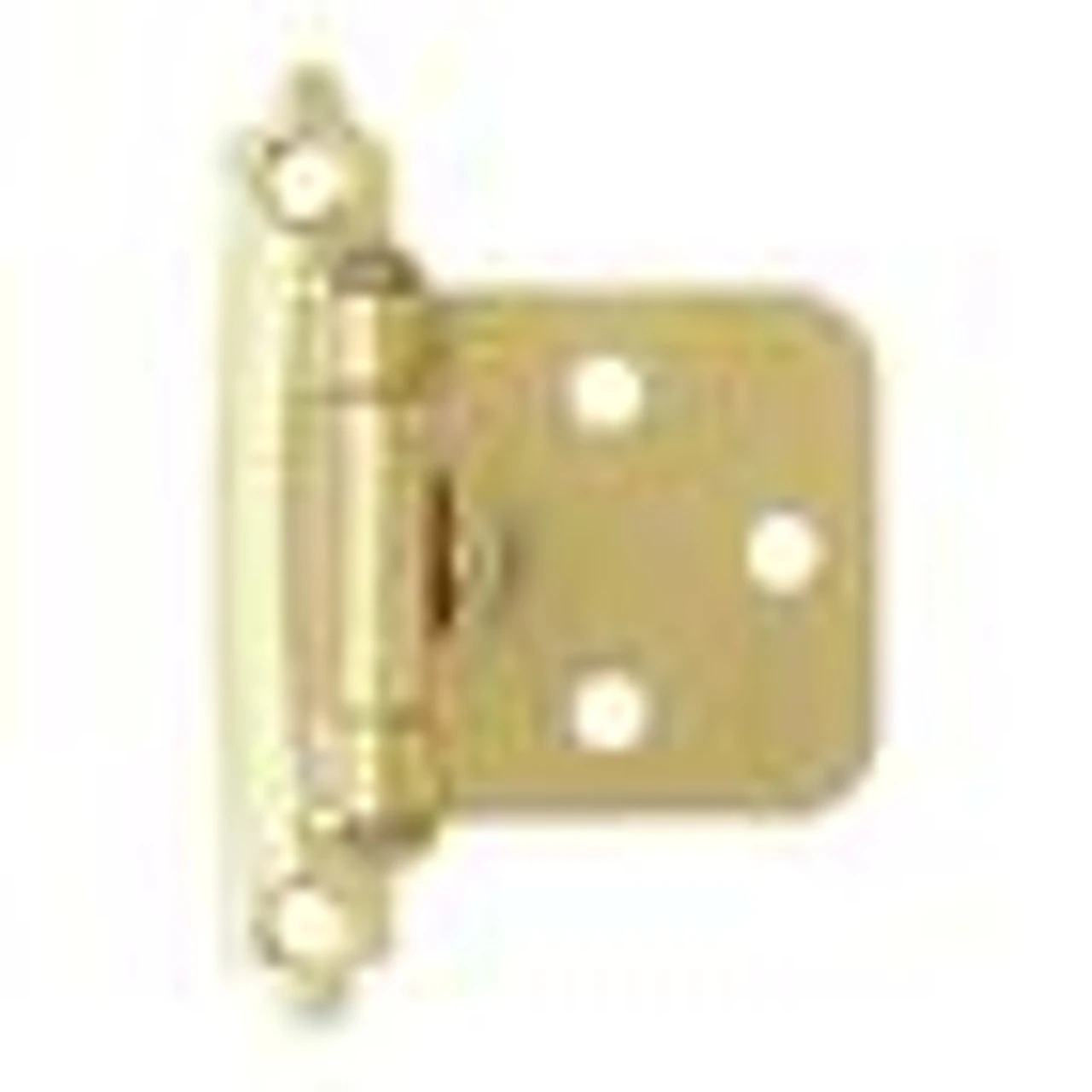 Bright Brass Semi-concealed, Self-closing, Overlay hinge, Bright Brass plated . Packed with screws.