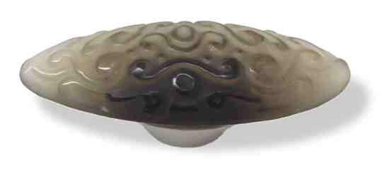 This art glass pull is part of the Betsy Fields Design Scroll Collection. Betsy Fields comments: “a tribal pattern that evolved into an art nouveau style all on its own! The joy of movement is what life is all about.” These pulls are hand-cast in solid glass, are acid-etched to impart a frosty satin finish, and the pattern is polished. Each knob will vary slightly. These variations and imperfections are a part of the unique character of each piece and will not be considered for replacement. We make no attempt to match them with each other or with the knobs in the set. If you prefer perfection to art, these knobs are not for you. A 3/8″ long X 1/4″ diameter threaded stem for extra support protrudes from the base of each piece. Some installations may require enlarging your screw hole to 1/4″. Comes with both 5/8″ and 1 – 1/8″ screws to fit most installation requirements.