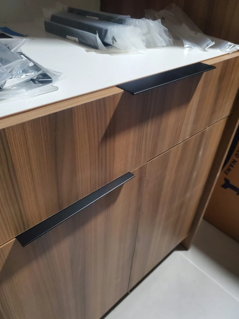Modern Edge 96mm Flat Black Cabinet Pull hidden top mount installation of this product makes it ideal for both kitchen cabinetry or office furniture. Flat black finish has a soft sheen and timeless style Product Dimensions Height: 0.9843″ Length: 4.56″ Width: 1.6535″