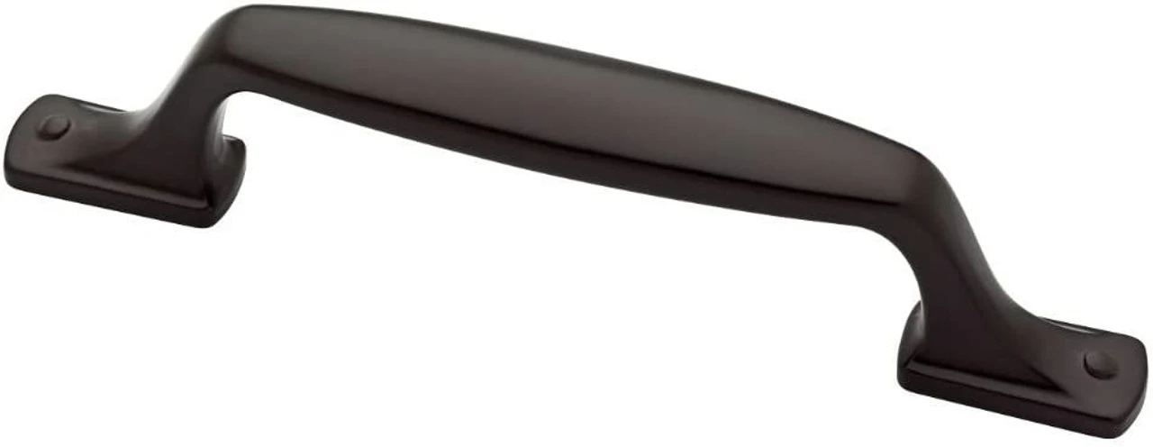 This retro styled pull is inspired by the 50s modern look and features faux rivets on the ends. 96mm centers. (3 3/4″) Comes with mounting hardware. Liberty Hardware