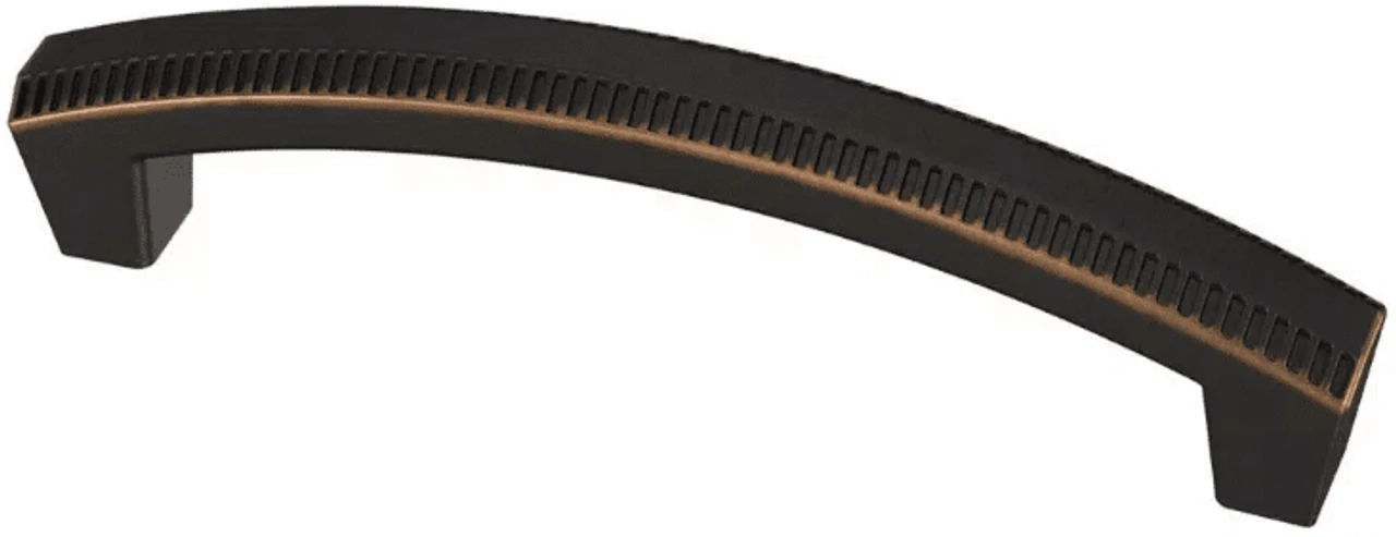 This textured and arched pull from Liberty Hardware is pictured in a flat black. Perfect for simple kitchens and for contrast on white cabinets. 96mm or 3 3/4″ centers. Comes with mounting hardware. Liberty Hardware