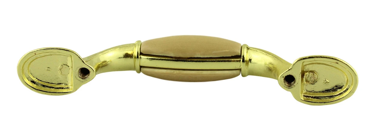 - Finish: Polished brass pull with almond ceramic center