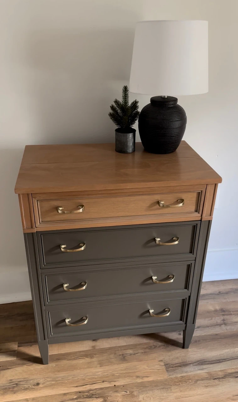 Soft brass cabinet pull with a sweep design make this as functional as it is aesthetically pleasing.