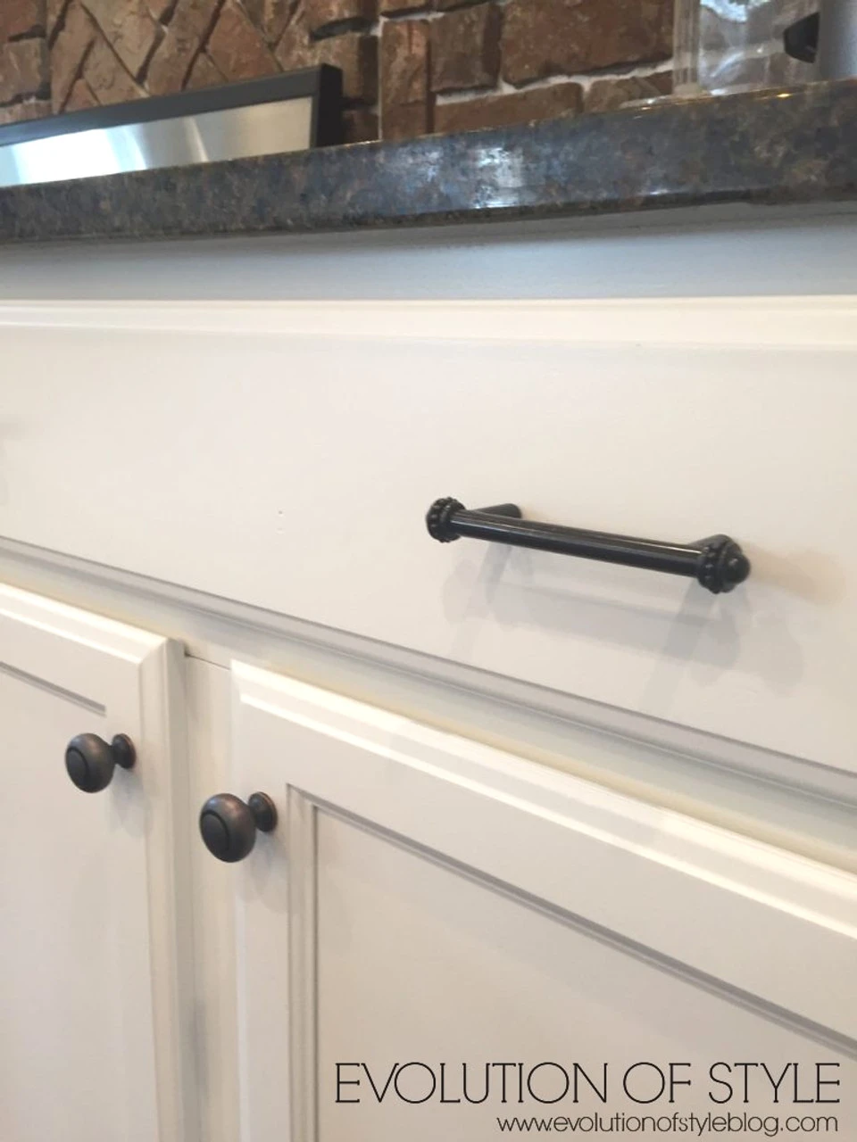 Beaded pull in venetian bronze from Liberty Hardware. The additional images are from the popular kitchen design and makeover blog Evolution of Style. Jenny used this pull with a matching Venetian bronze knob (L-61780VB) to help makeover a dated kitchen into the beauty it is now! The second set of additional photos comes from Val at Love My DIY Home and features these pulls on a nice dresser makeover and paired with a matching ring pull (L-PN1512-VBR-C).