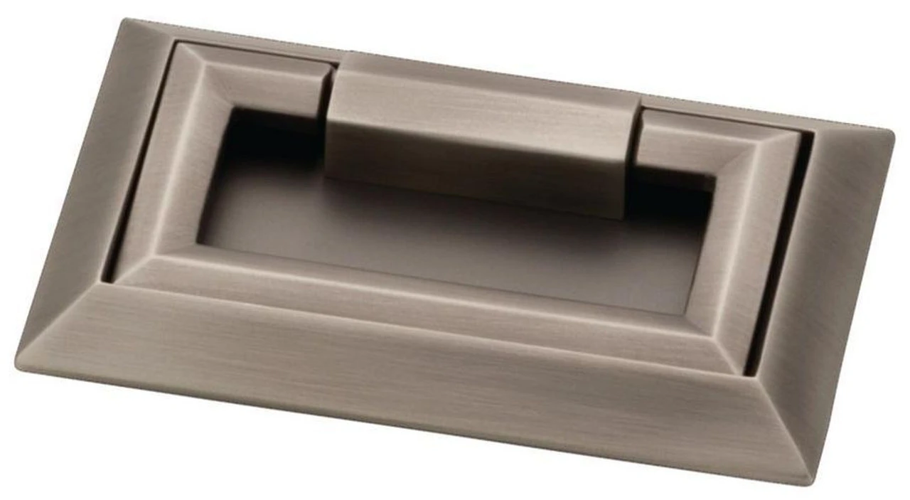 Campaign style pulls are signified by their being recessed with the bail pulls being flush with the side of the box. They get their name from “military campaigns” in which this style of hardware was preferred to keep chests and storage trucks stacked perfectly together without the hardware interfering. These bail pulls project 9/16″ from the face of the furniture. The additional photos are in the brushed brass finish, but are included to show the back of the pulls and also how they are to be installed. The photos are courtesy of House Becoming Home Blog. This particular campaign bail pulls comes in a beautiful heirloom silver finish which will match all the other heirloom silver on our website perfectly.
