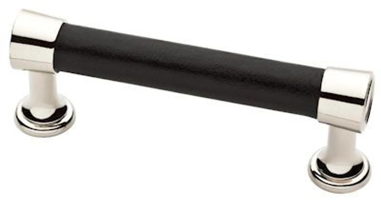 Averil 3 in. (76mm) Center-to-Center Polished Nickel with Black Faux Leather Insert Bar Drawer Pull