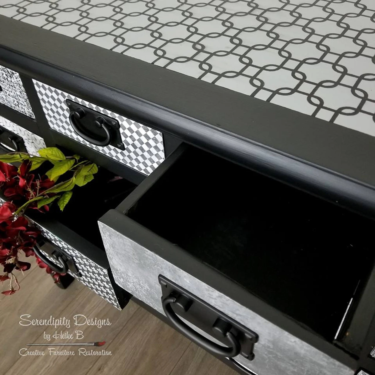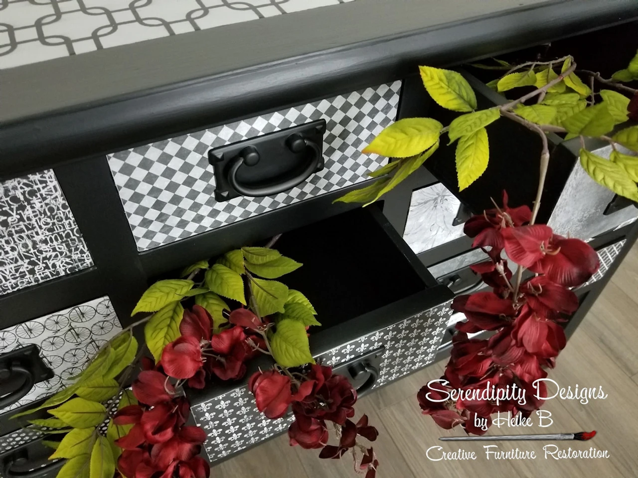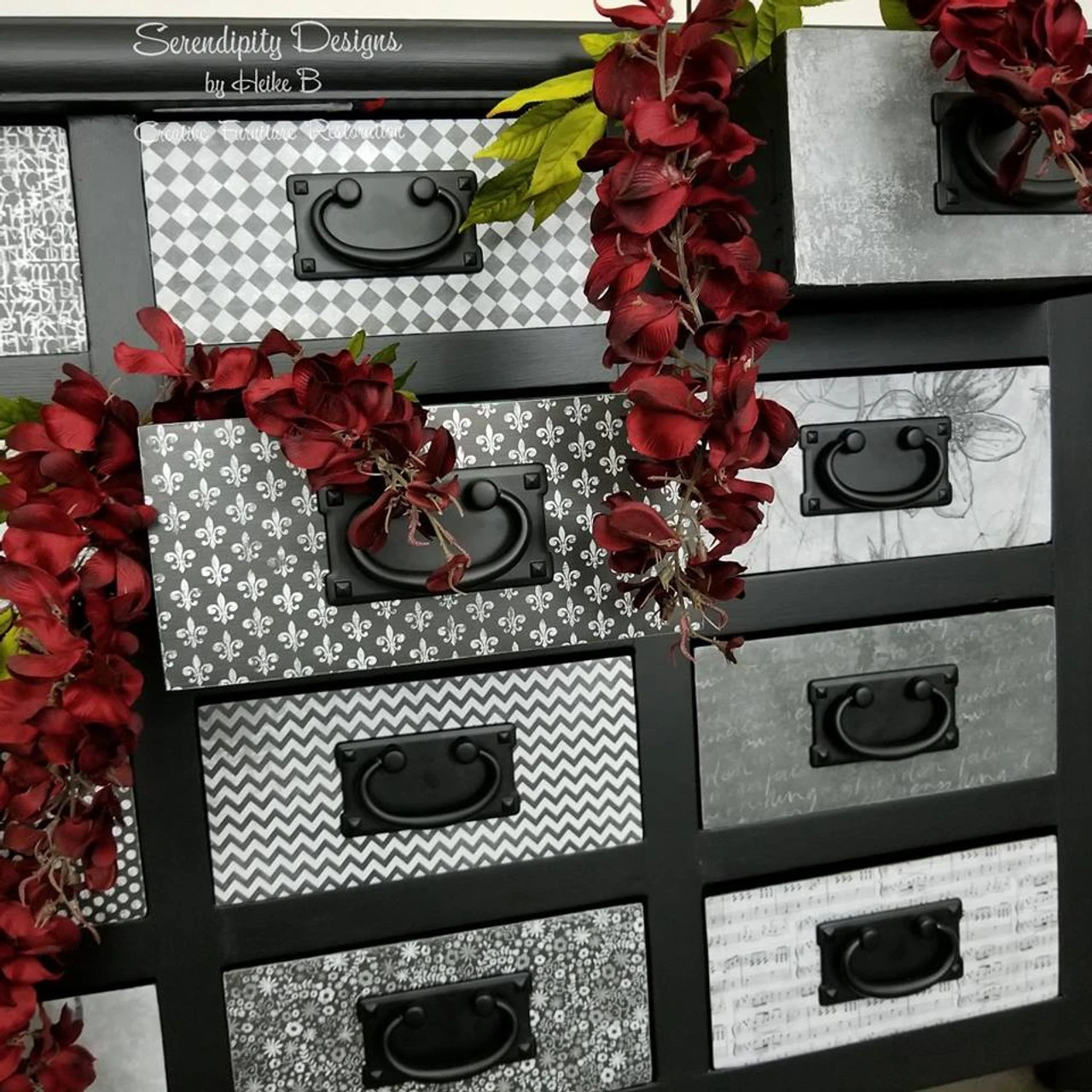 This Mission Style Flat Black finished hardware is a beautiful accent to traditional style cabinetry or furniture. Multiple finishes available. The additional images of the amazing black piece come from Serendipity Designs!
